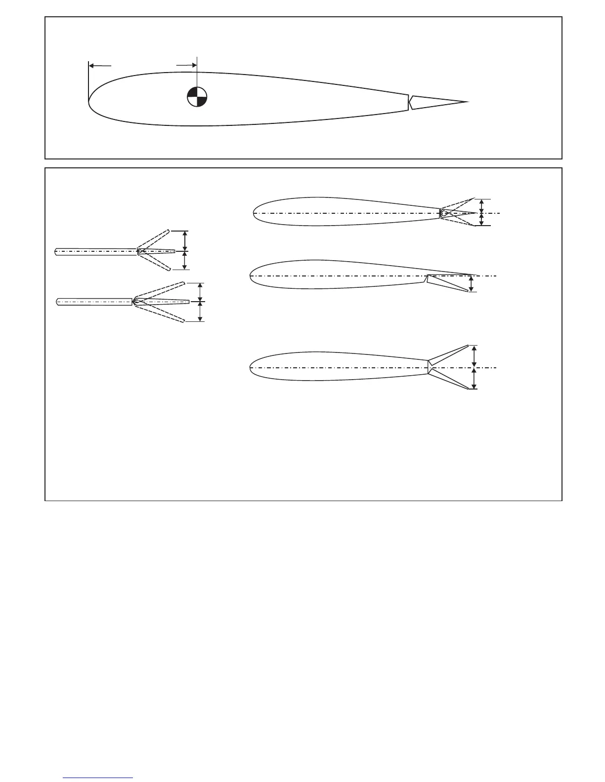 Adjust the travel of the control surfaces to achieve the values stated in the diagrams.