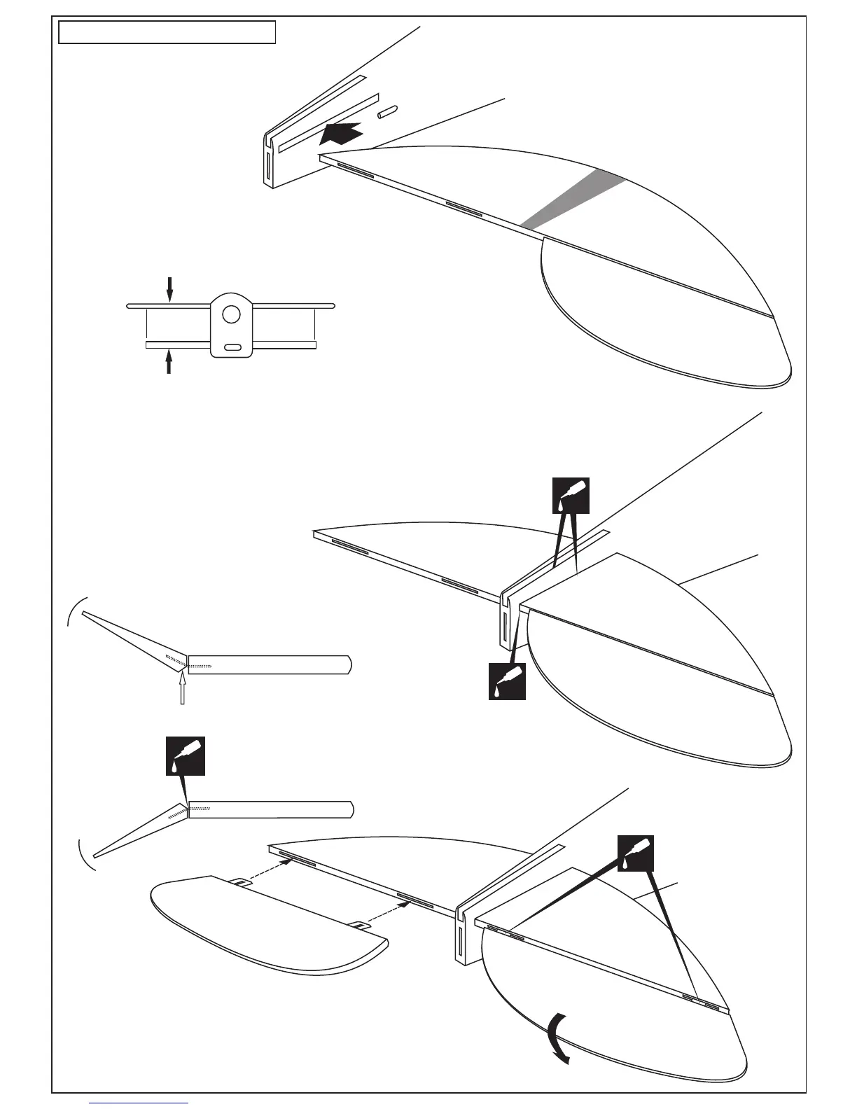 Without using glue yet, push the elevator and its