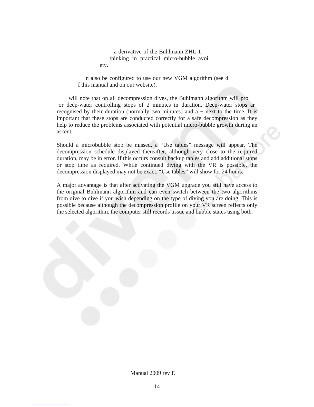 VR Dive Computer Operations Manual 2009 rev E 28/01/2009