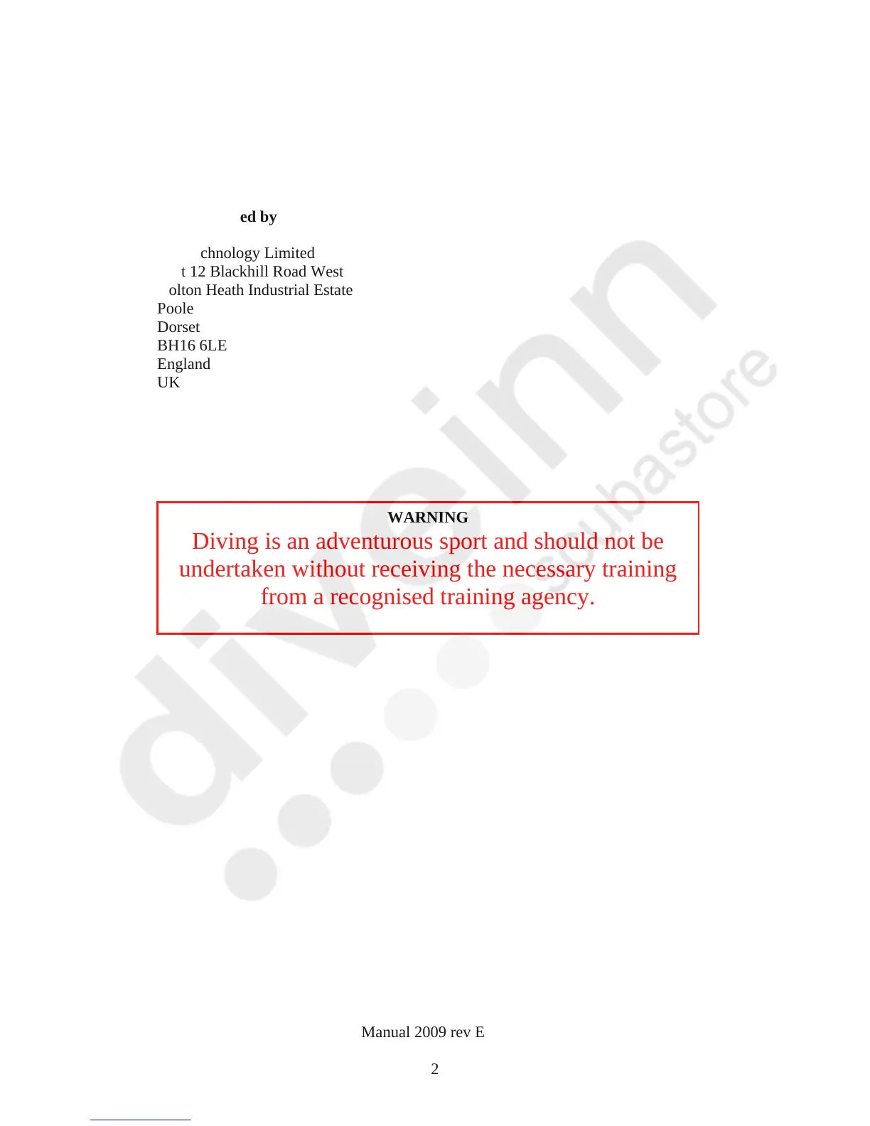 VR Dive Computer Operations Manual 2009 rev E 28/01/2009