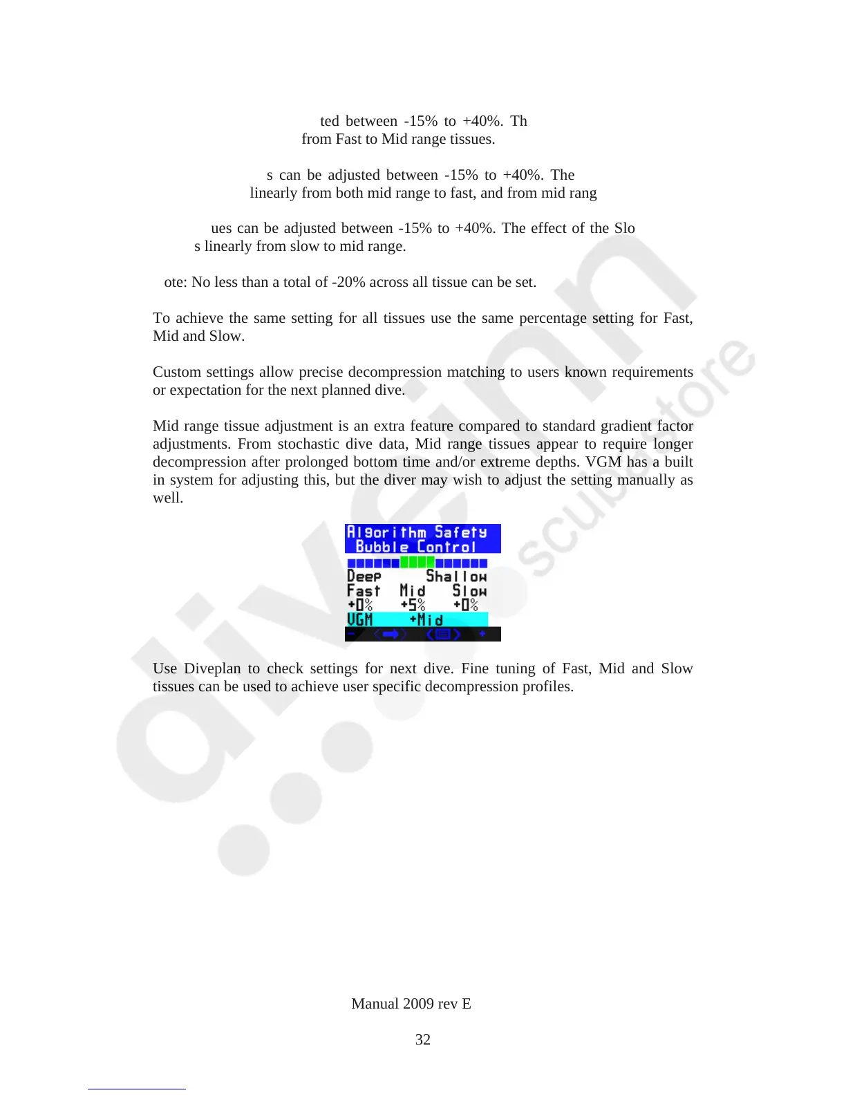 Use Diveplan to check settings for next dive. Fine tuning of Fast, Mid and Slow