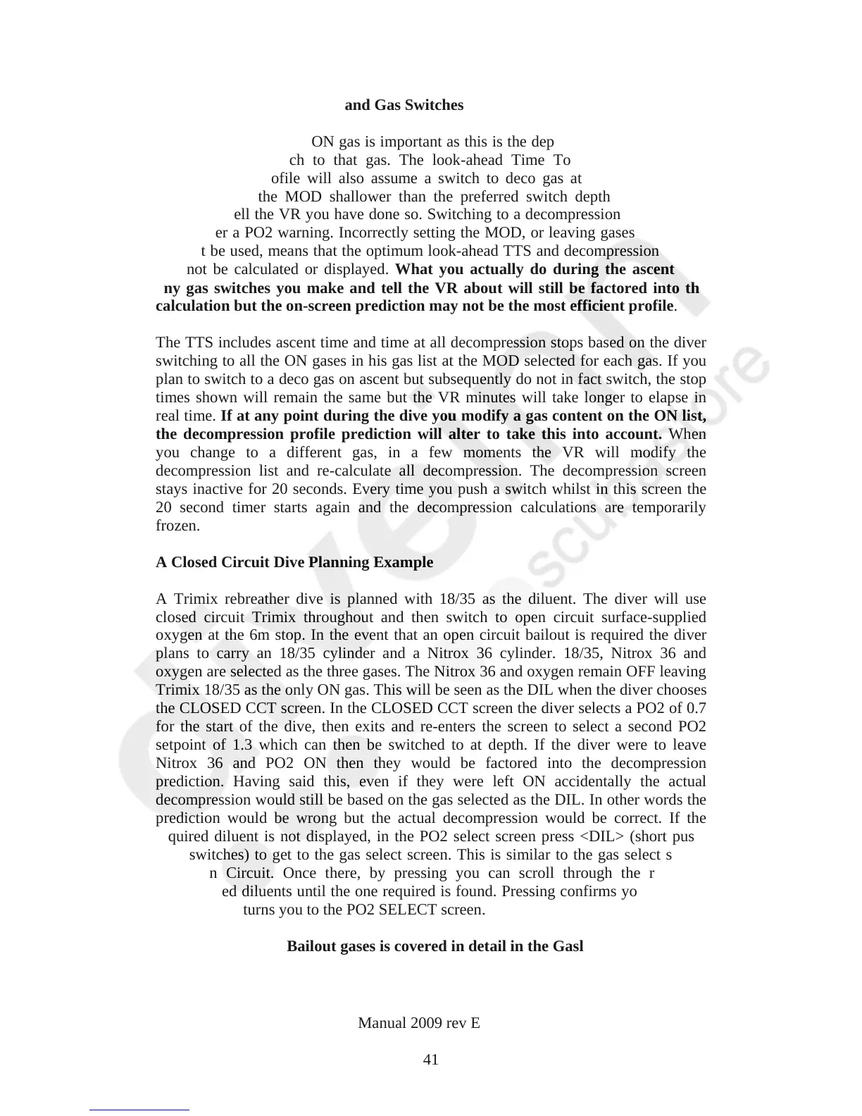 Note: Setting CCR Bailout gases is covered in detail in the Gaslist section.