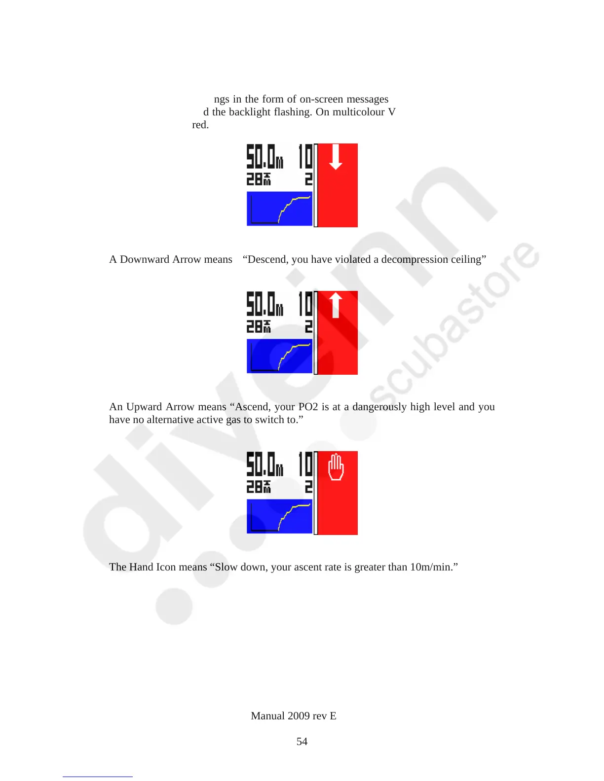 of the dive screen and the backlight flashing. On multicolour VRs the right hand side