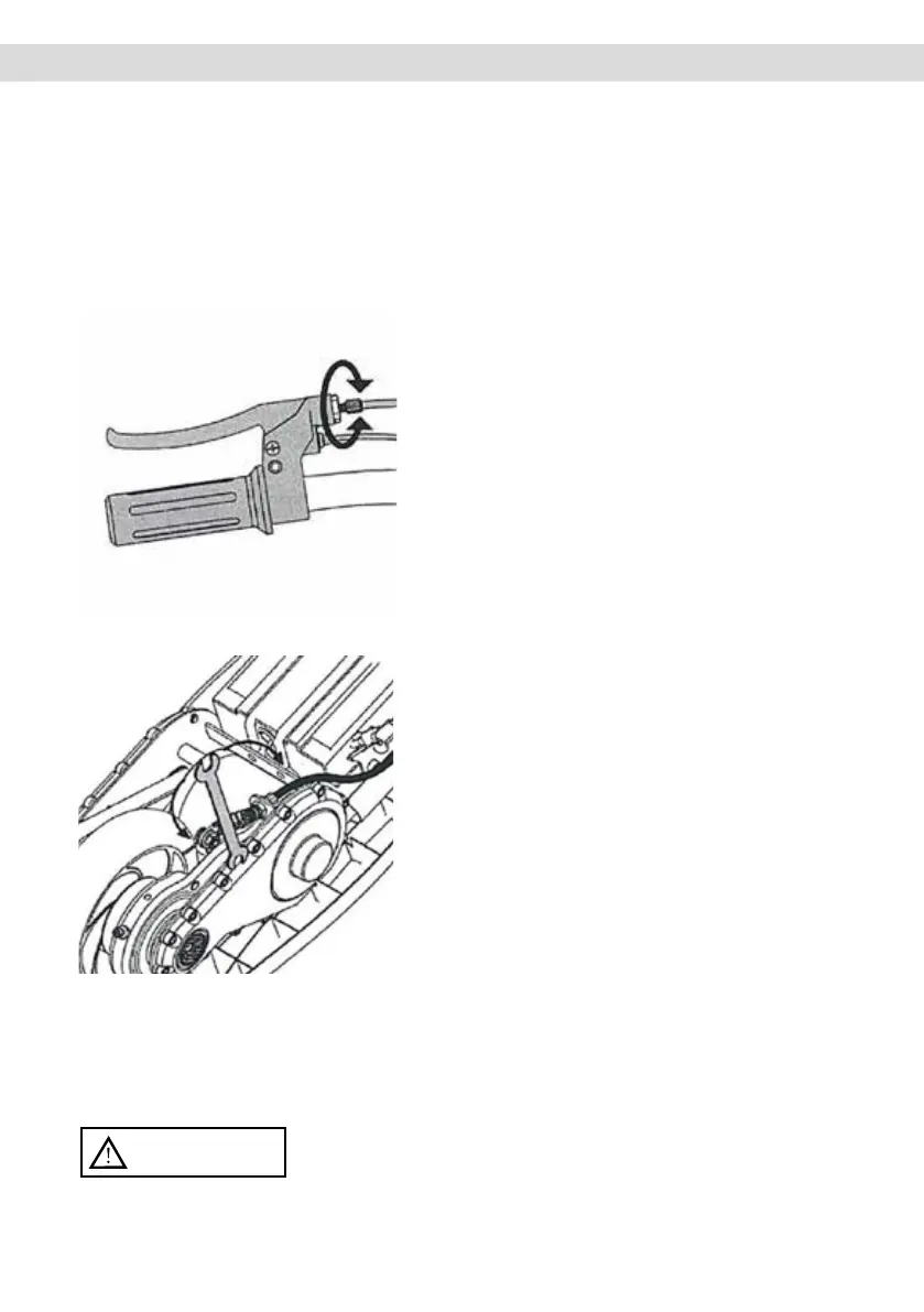regulação da alavanca do travão no sentido horário (para