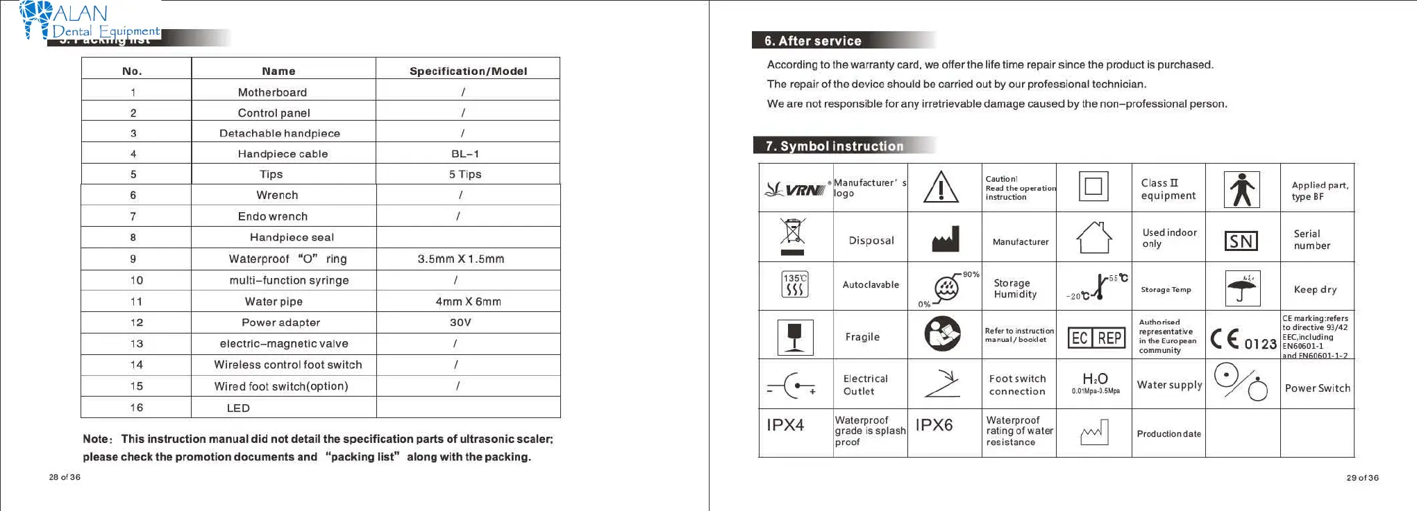 VRN A8 - 5. Packing List; Packing List Details; 6. After Service; After Service Information