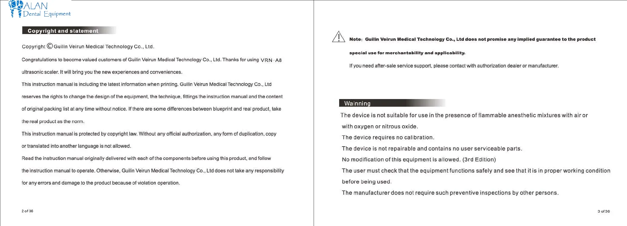inslruclion manual is including the latest informalion when prinling. Guilin Veìrun Medical Technology Co.,
