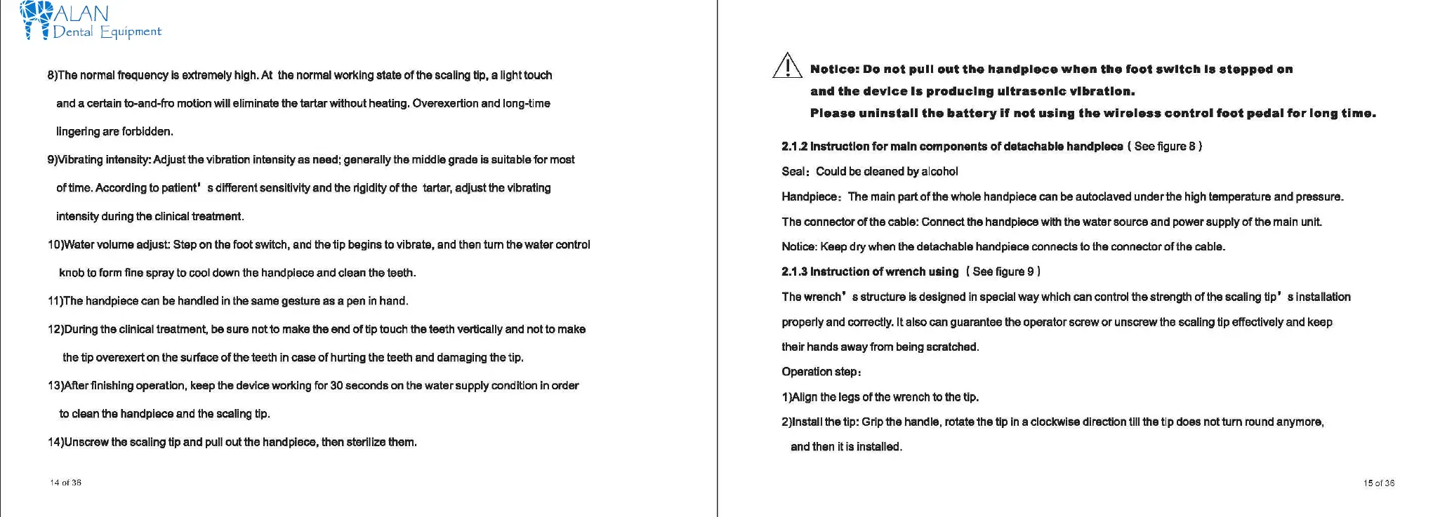 14 )Unscrew the scaling tip and pull out the