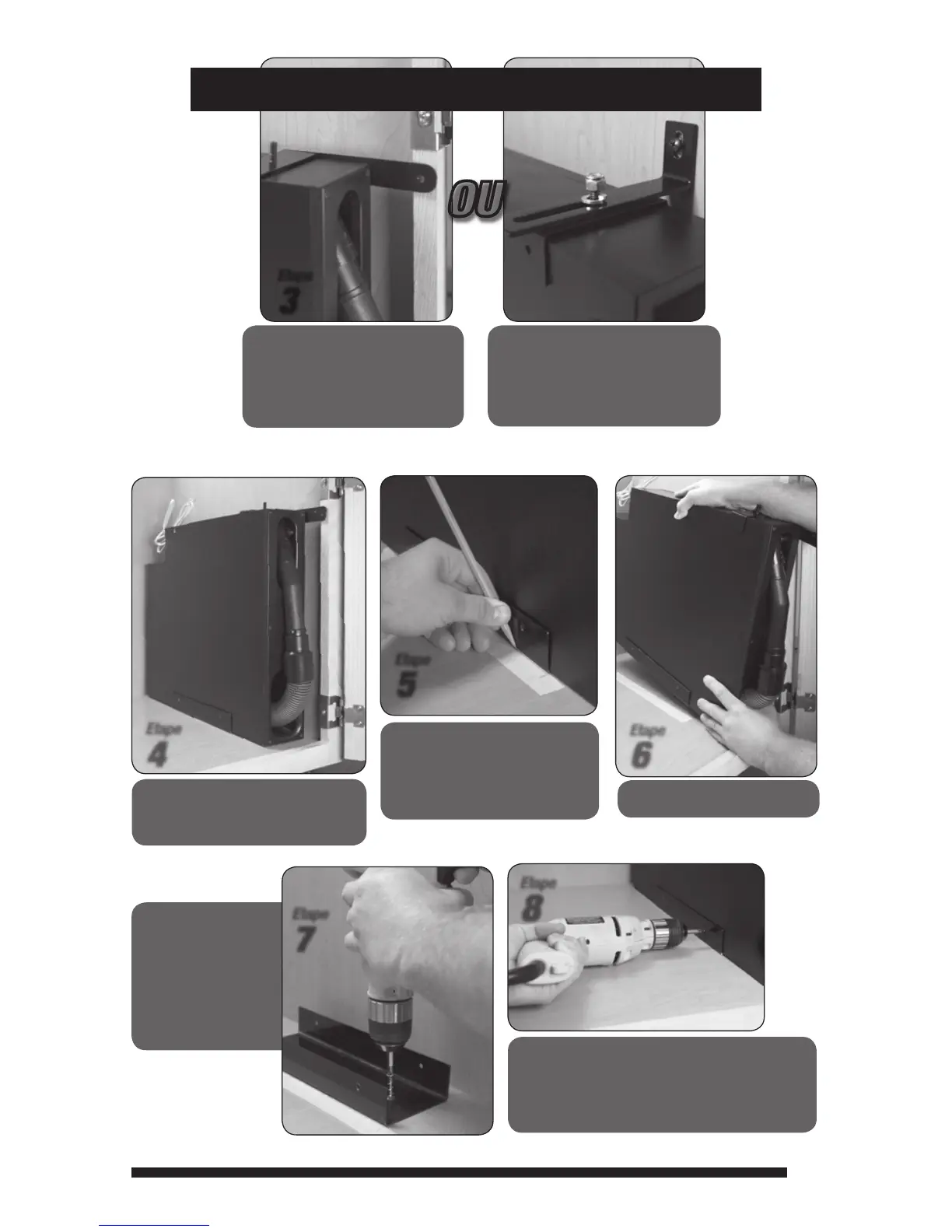correctement. Utiliser ensuite les deux vis à bois noires