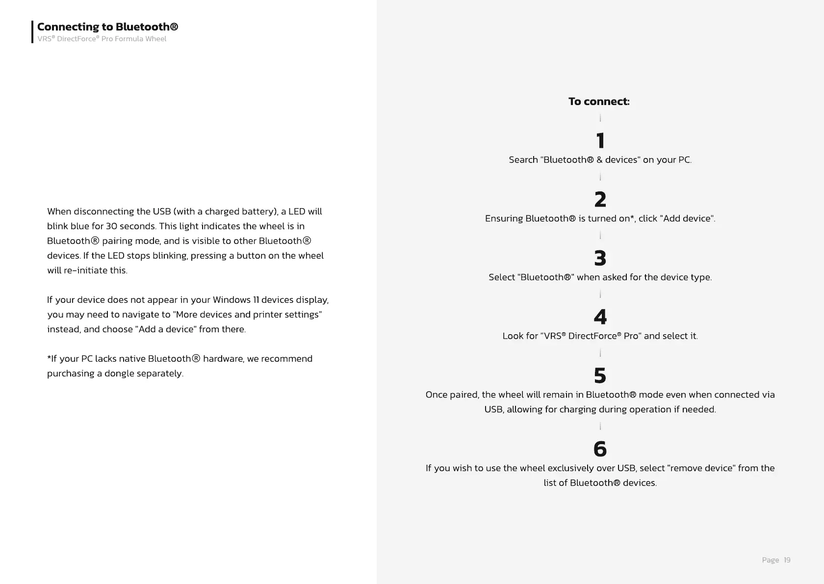 Once paired, the wheel will remain in Bluetooth® mode even when connected via