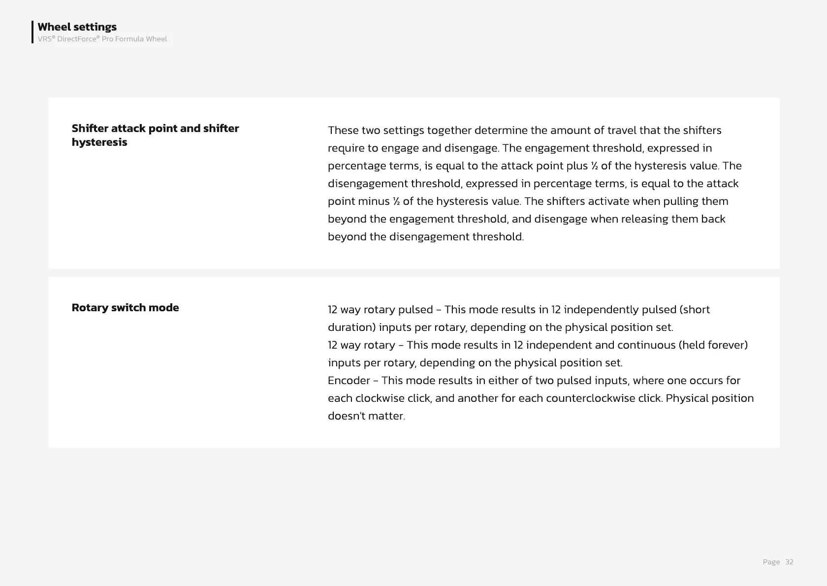 point minus ½ of the hysteresis value. The shifters activate when pulling them