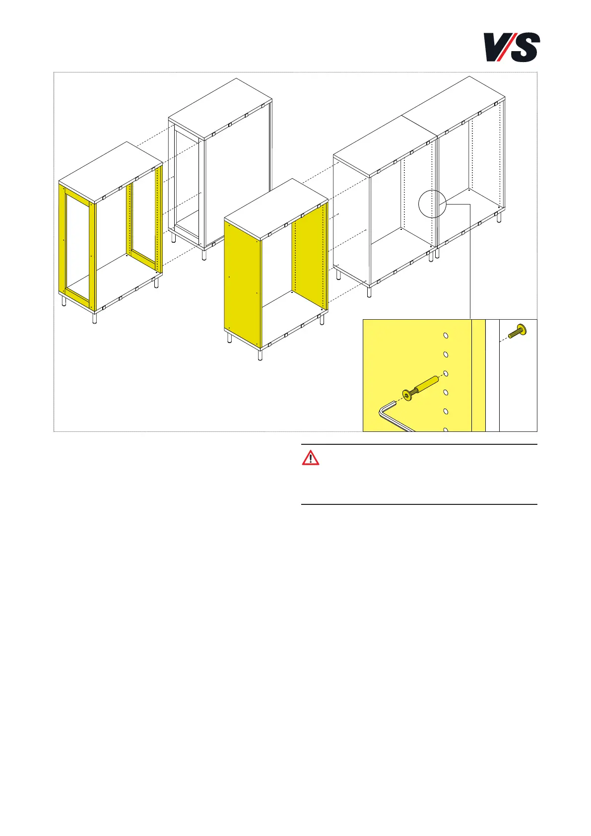 Achtung! Vor dem Verbinden von Schrankelementen mit