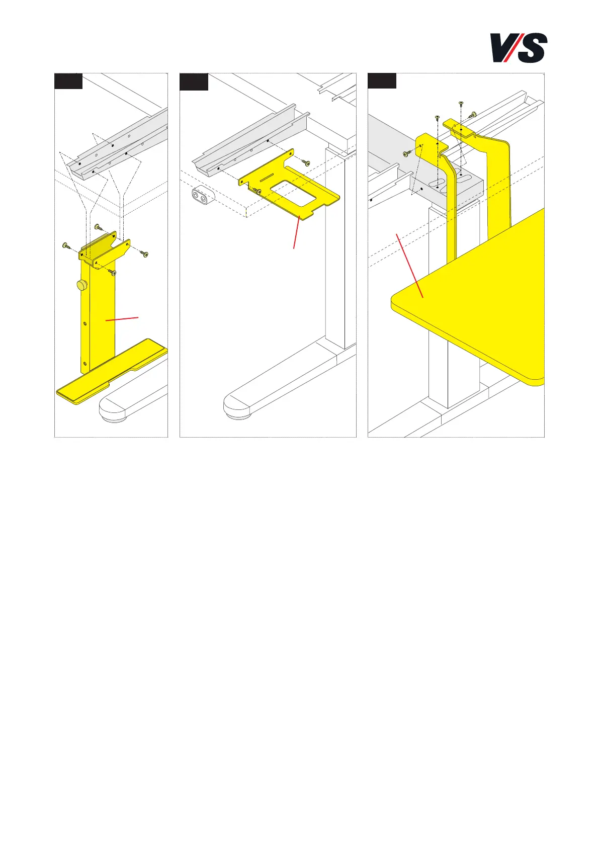 Halterung an Tischtraverse von oben und seitlich verschrauben. Für Ver-