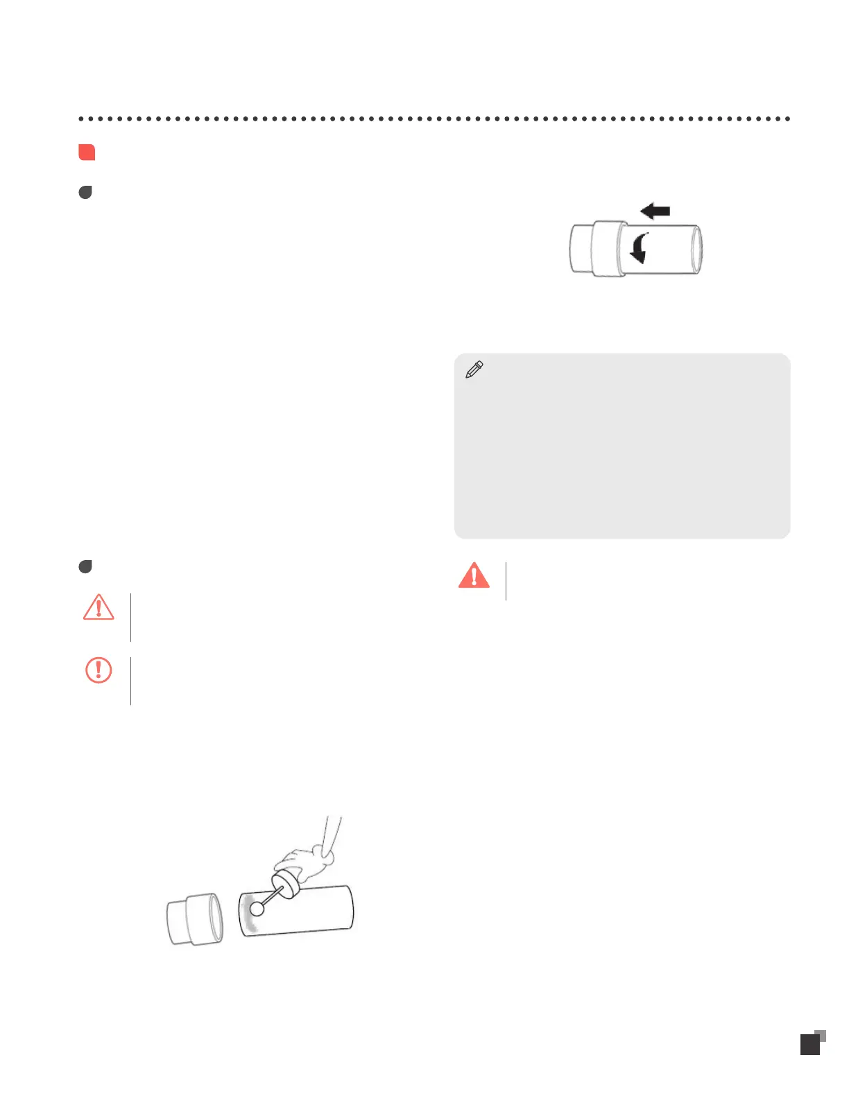 • Ensure that the inside of the pipe fitting and the outside of the pipe,