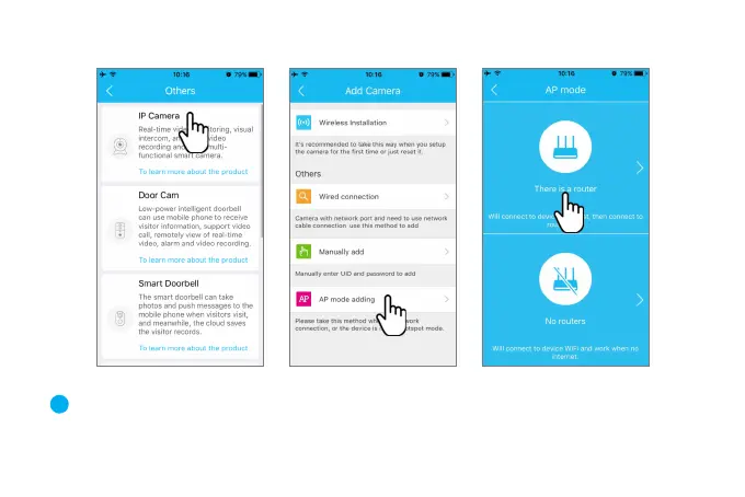 "Others"on the bottom right corner "IP Camera"--- "AP mode adding"---