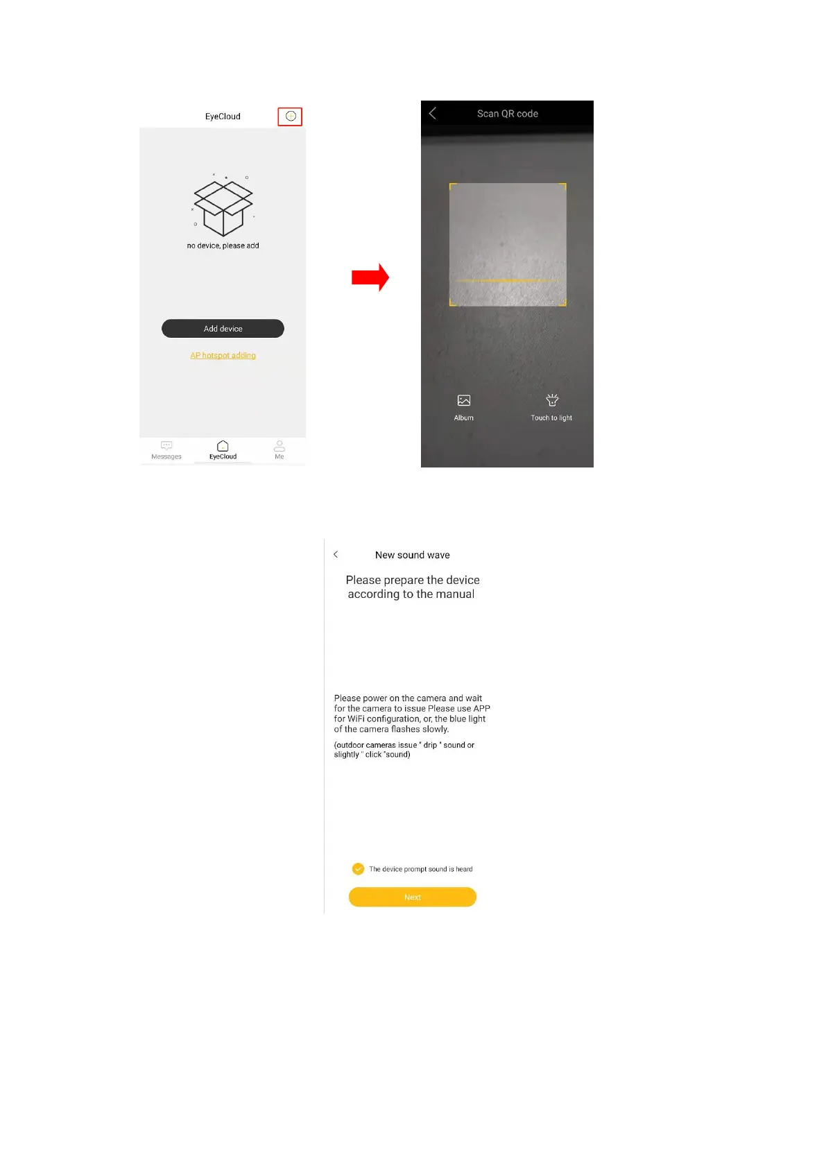 blue light flashing, then “tick” the tip after scan the QR code and click “Next”.