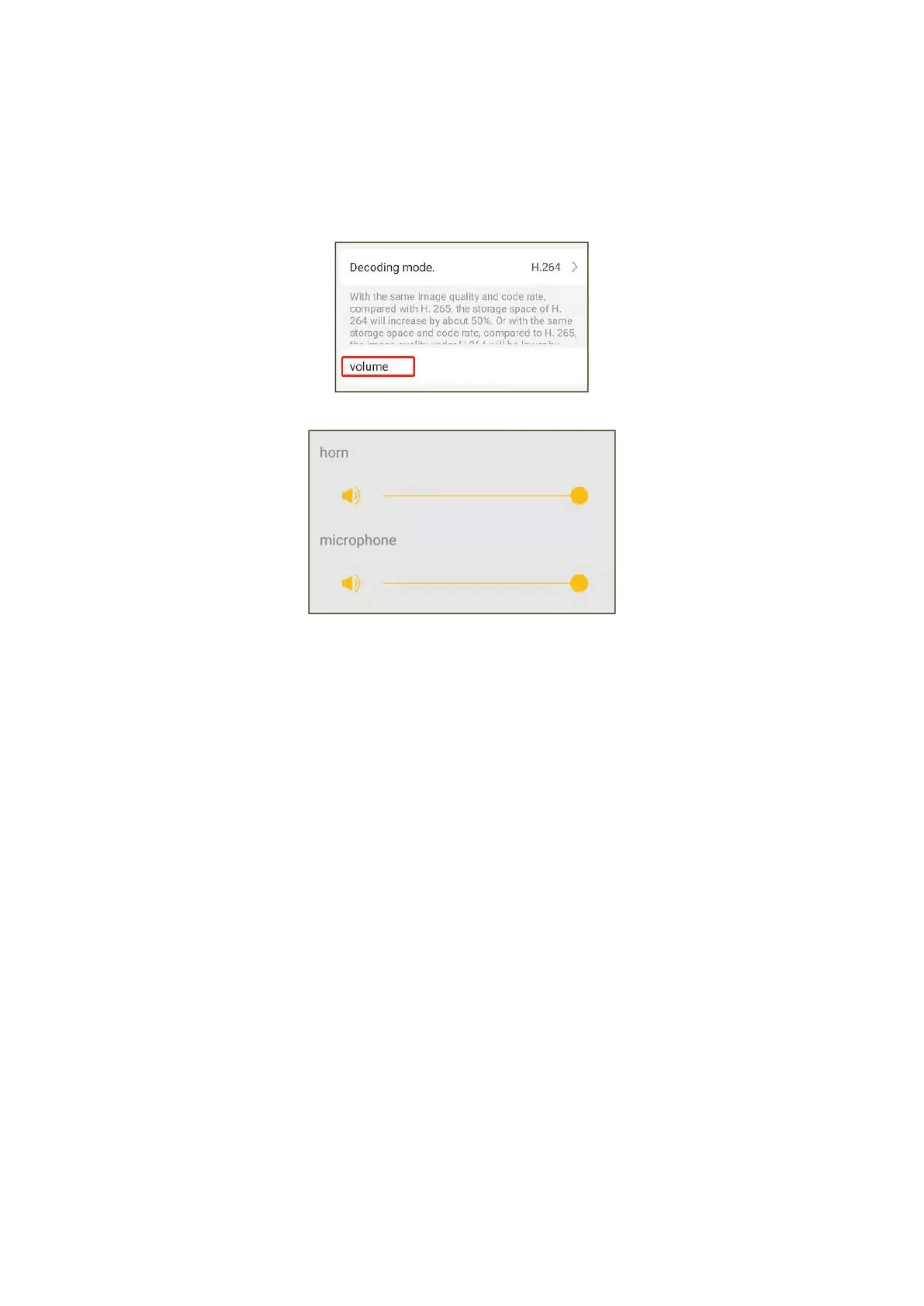The camera's microphone and speaker volume can be adjusted here. Tap this option to