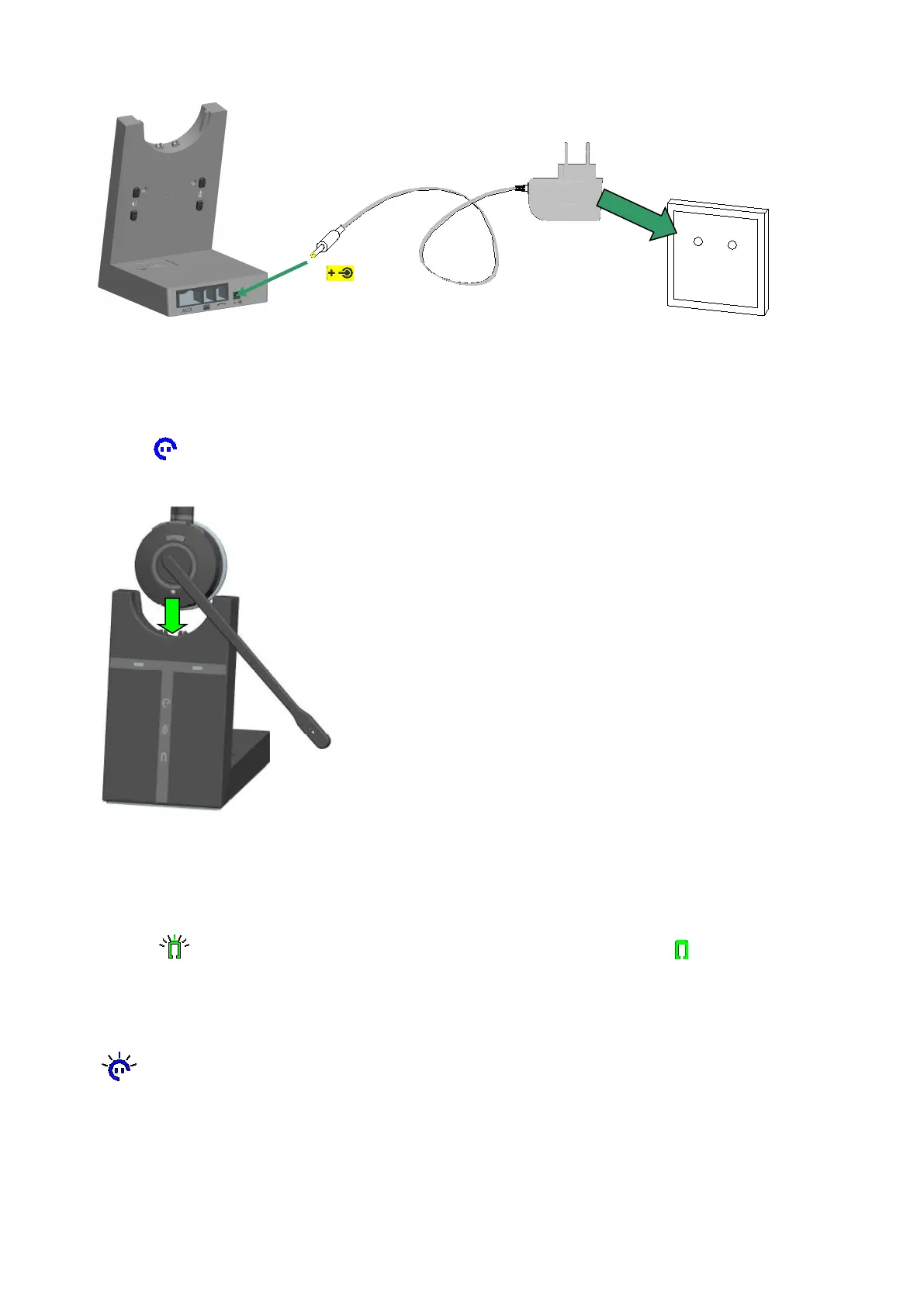 2. When docked correctly the headset battery will begin charging, if needed(LED will flash when