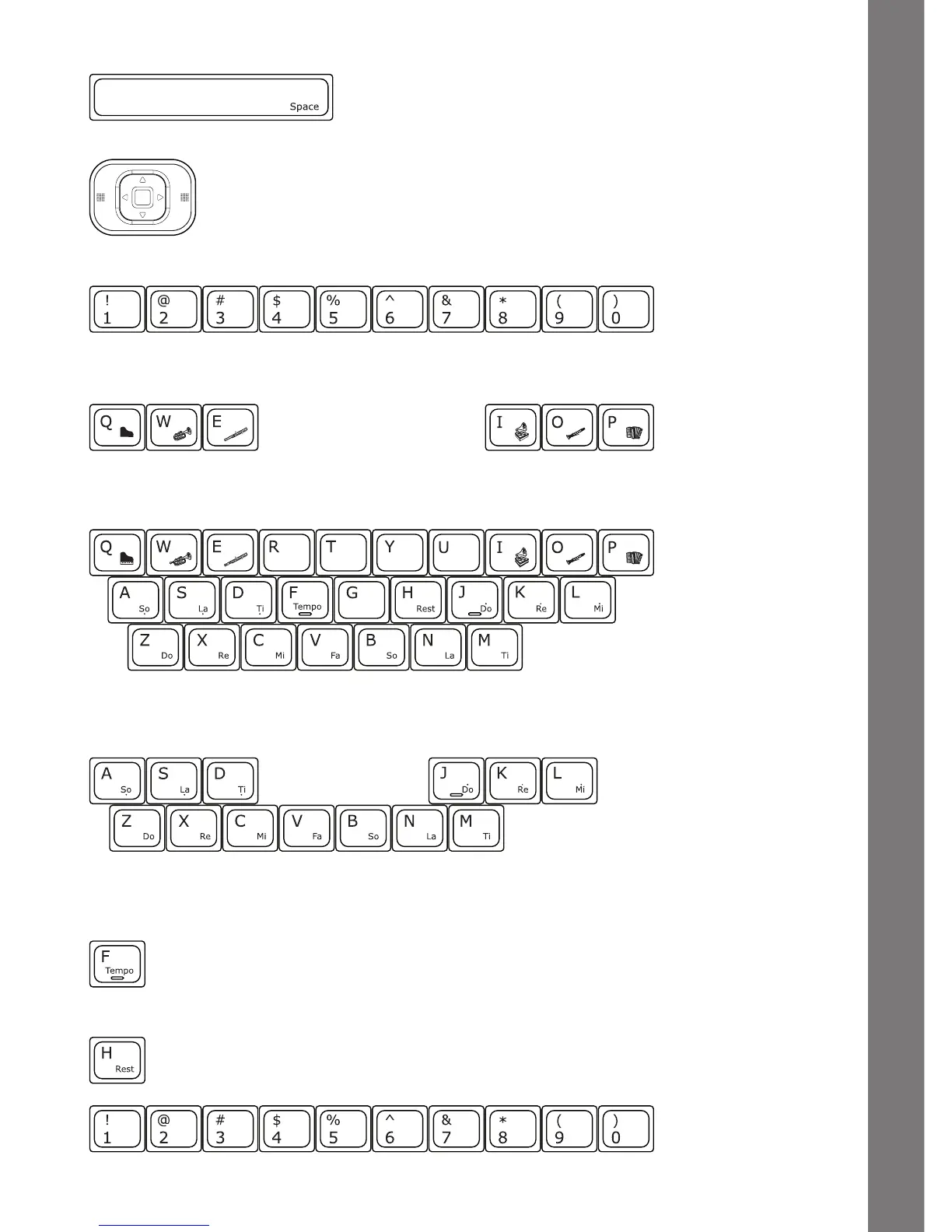 Rest Key: Press this key to insert a musical rest in Little Musician.