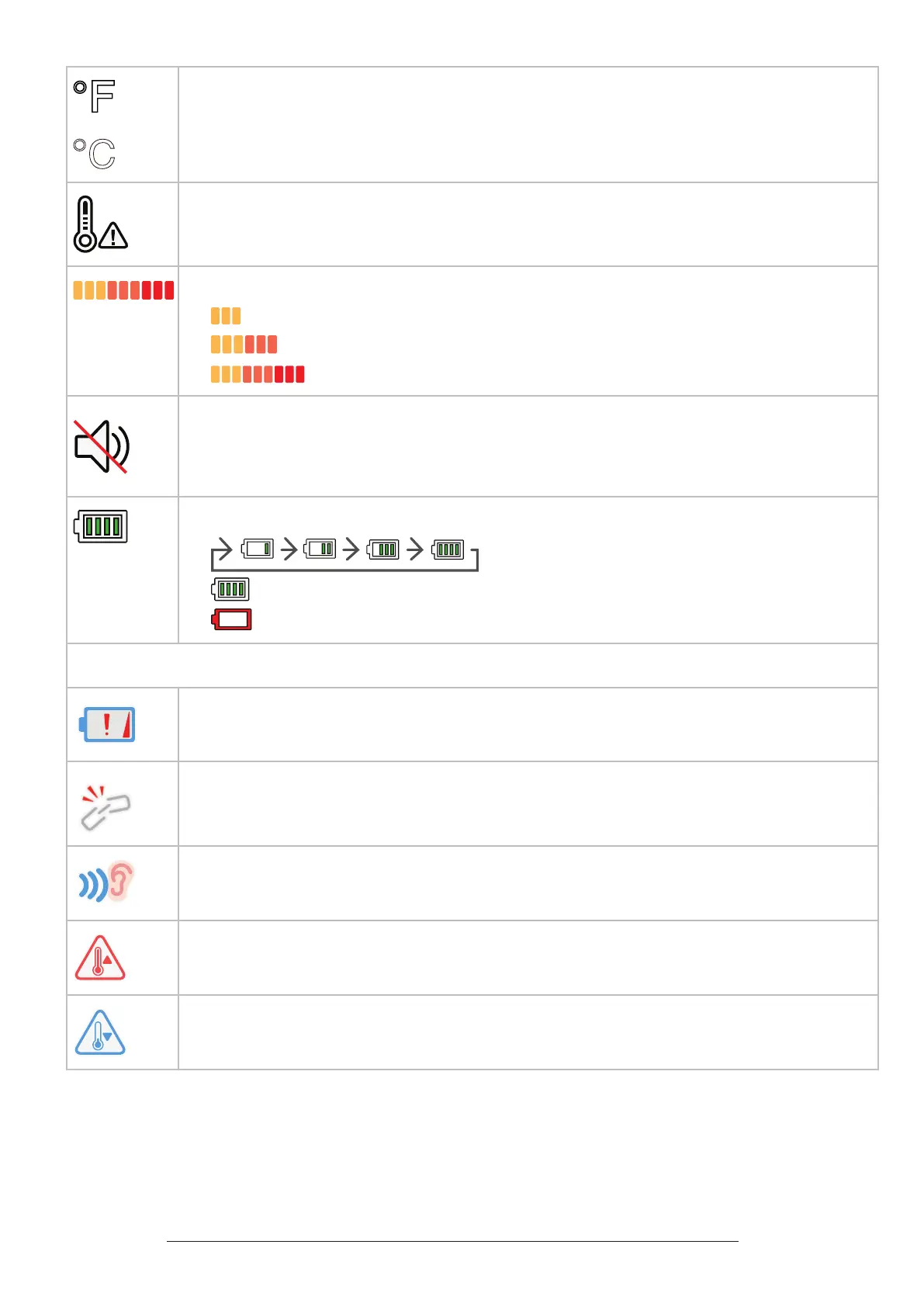 • Baby unit detects temperature is at or is lower than the set minimum.