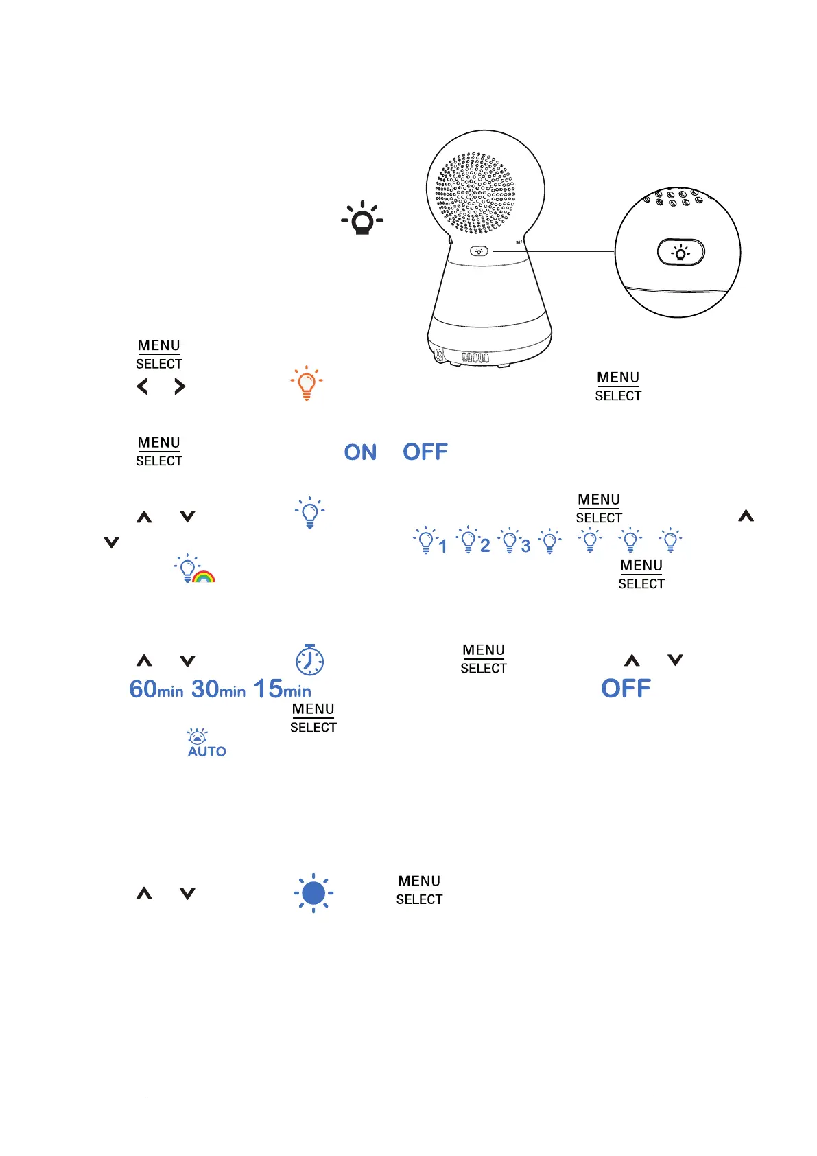 • Set timer to turn on the night light when baby unit detects sound. It will