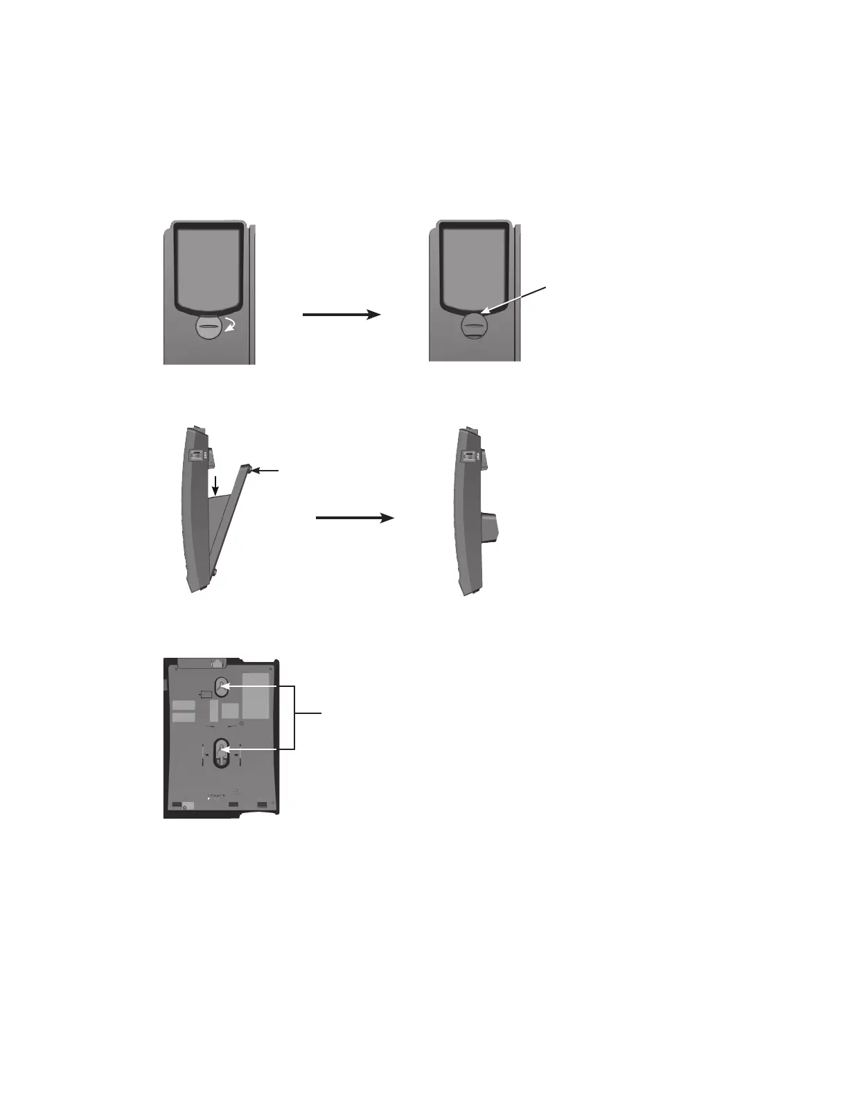 2. Set aside the handset. On the telephone base cradle, place a coin in the slit of the wall mount clip and rotate a half turn