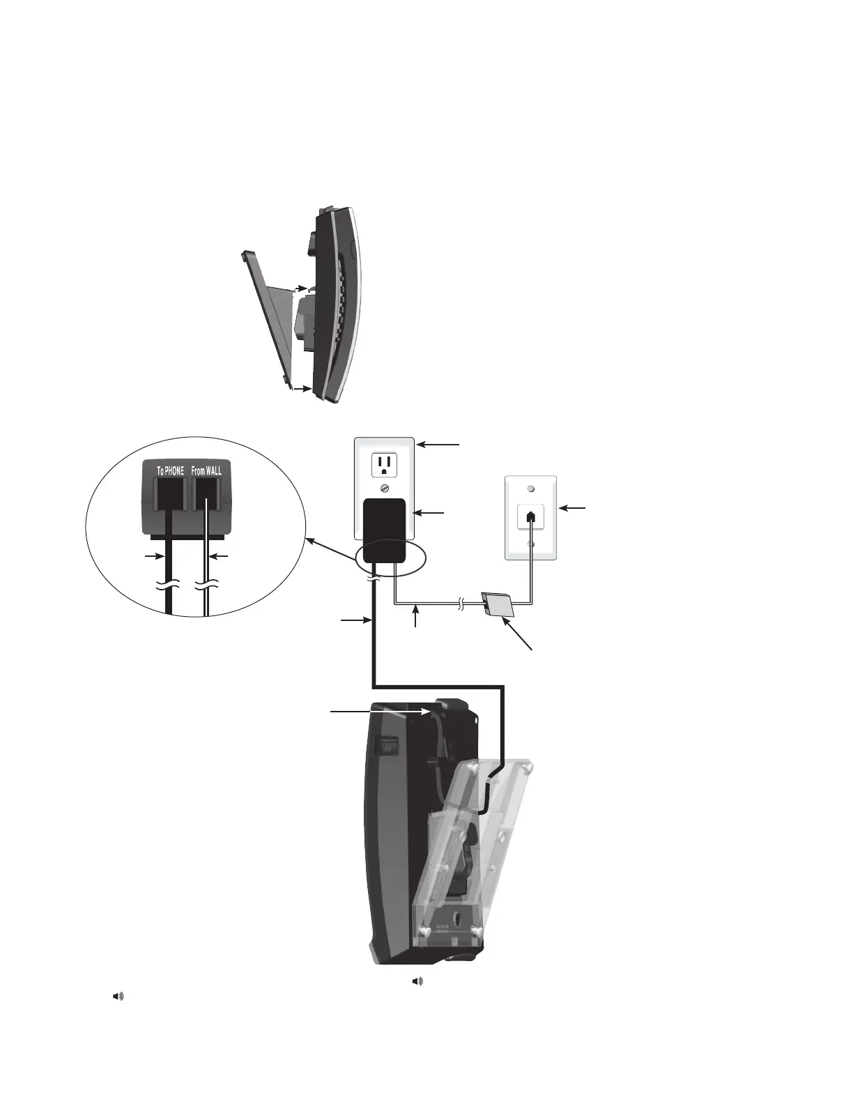 1. Turn the telephone base over with the bottom side facing up. Insert the tabs into the grooves to afx the mounting bracket