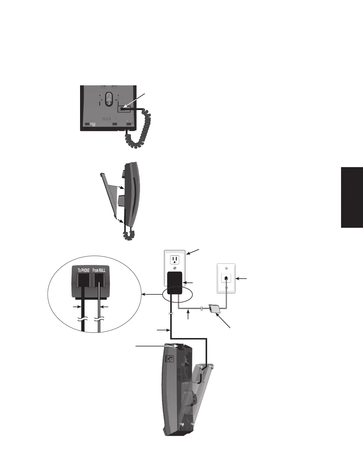 3. Install the telephone base as shown below.