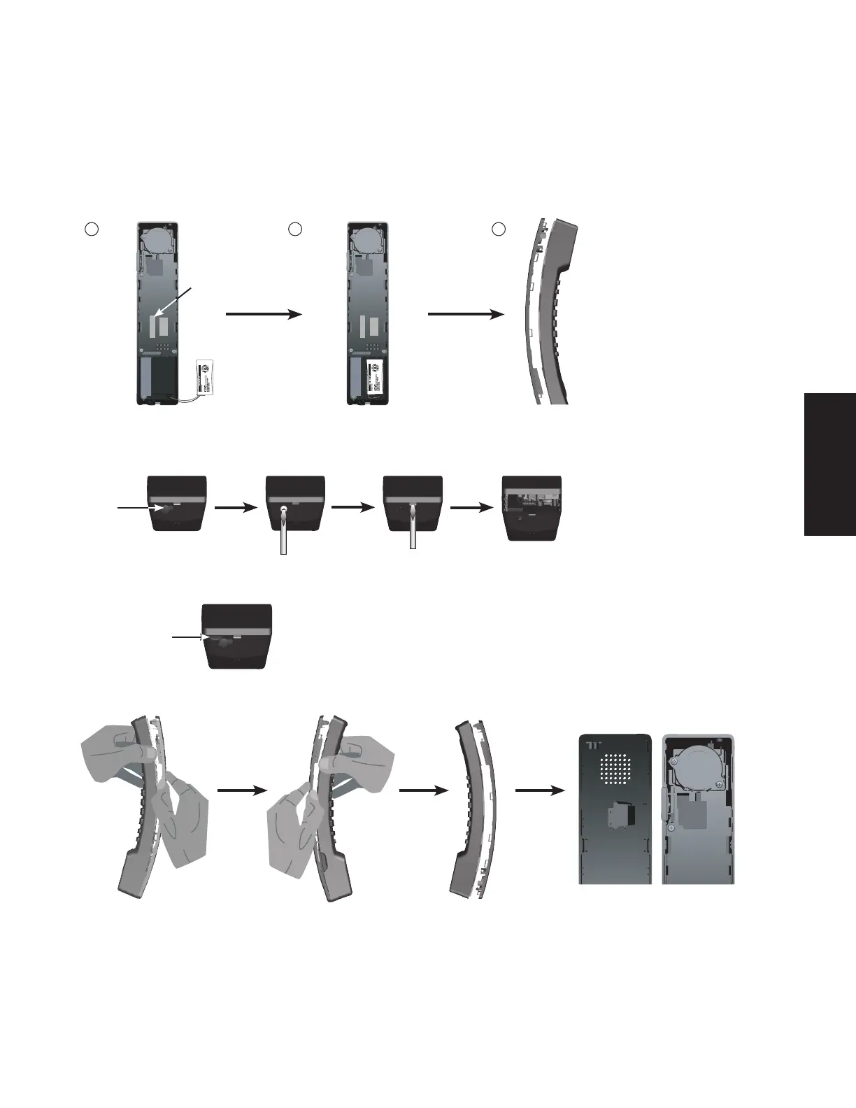 rmly push downward until all the tabs lock in the grooves. Then install the screws at both ends of the handset.