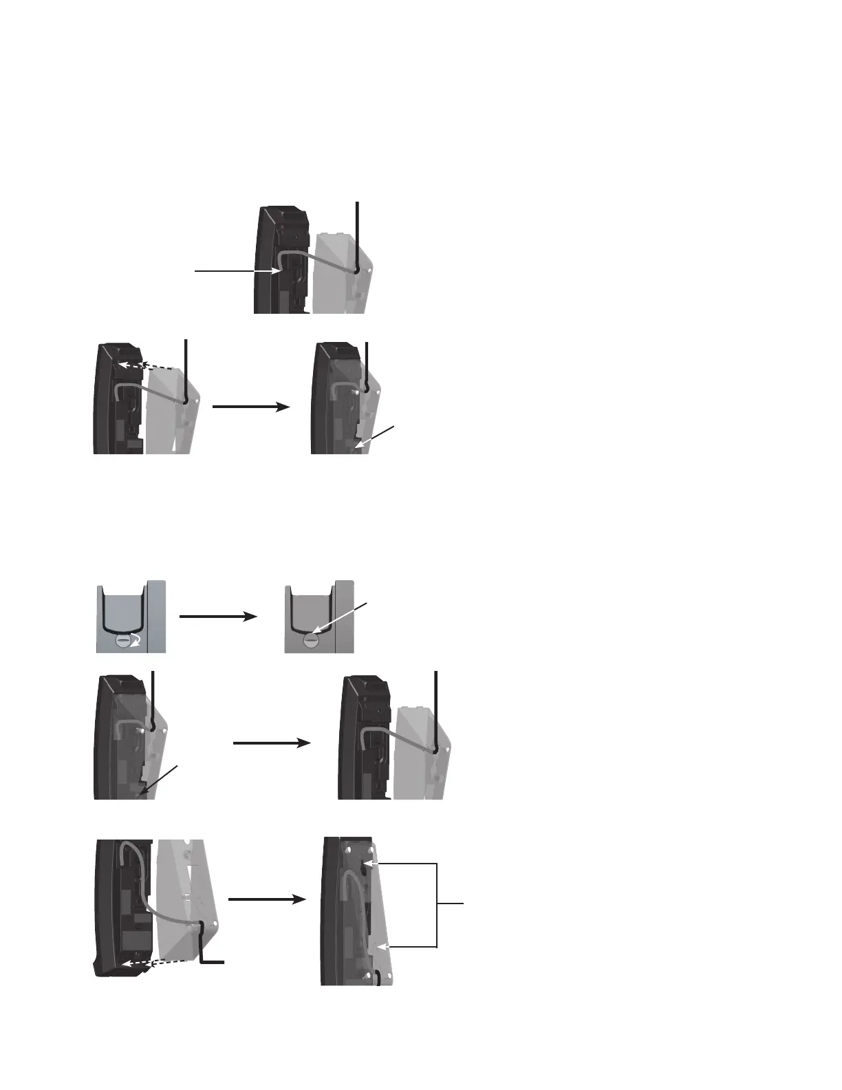 the charging base and route the cord out from the large eyelet on the mounting bracket.