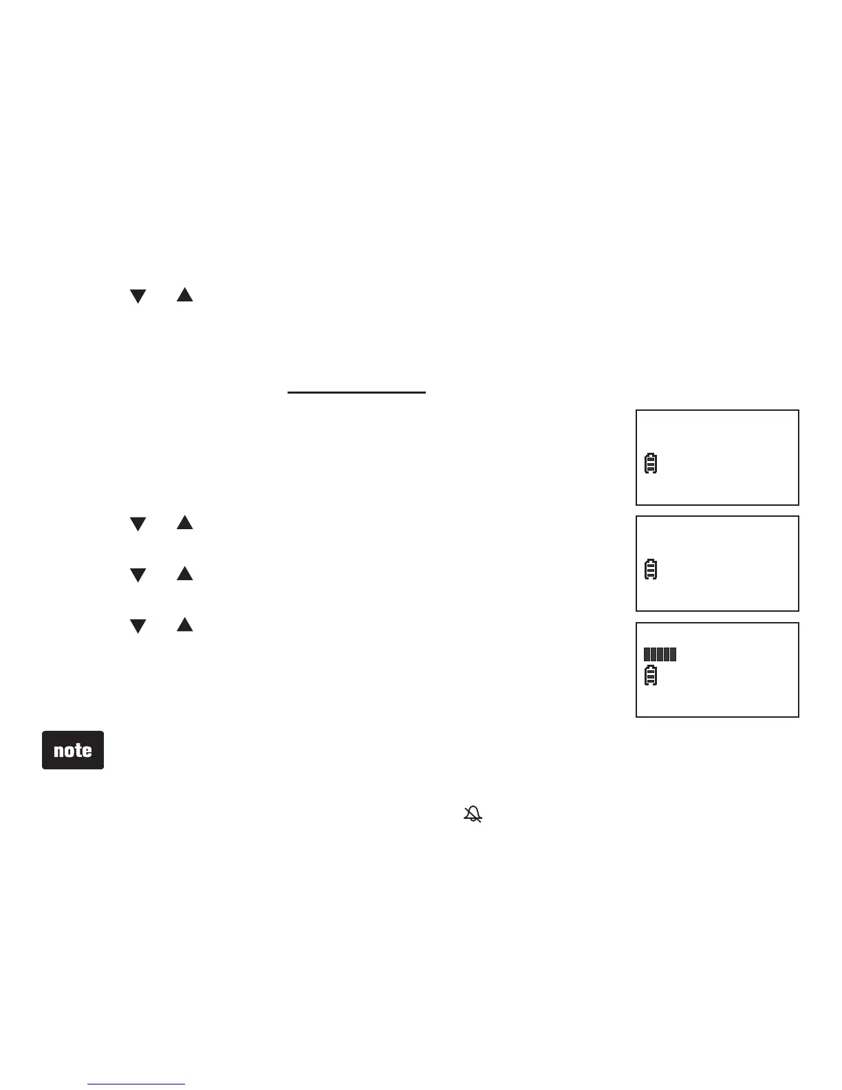 Press or to adjust the volume. A sample of each ringer