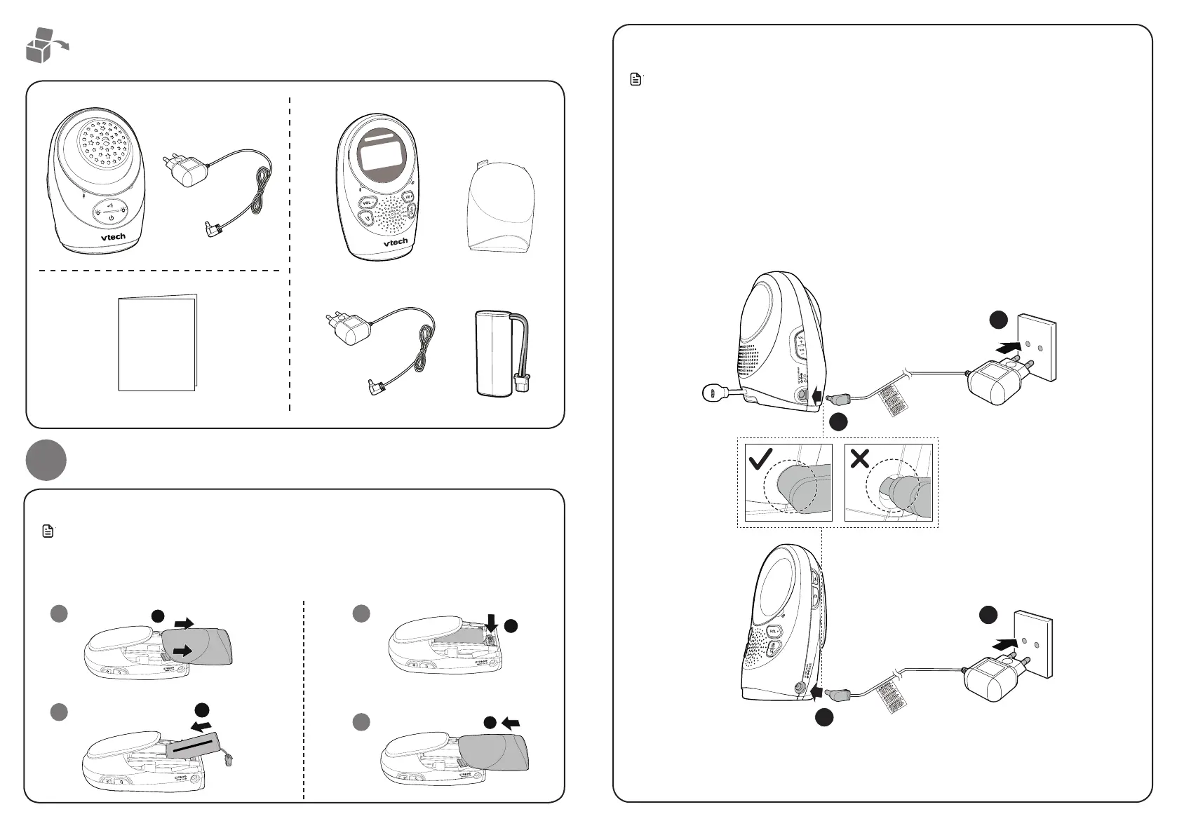 • Stellen Sie sicher, dass sich die Elterneinheit, die Babyeinheit und der Netzstecker