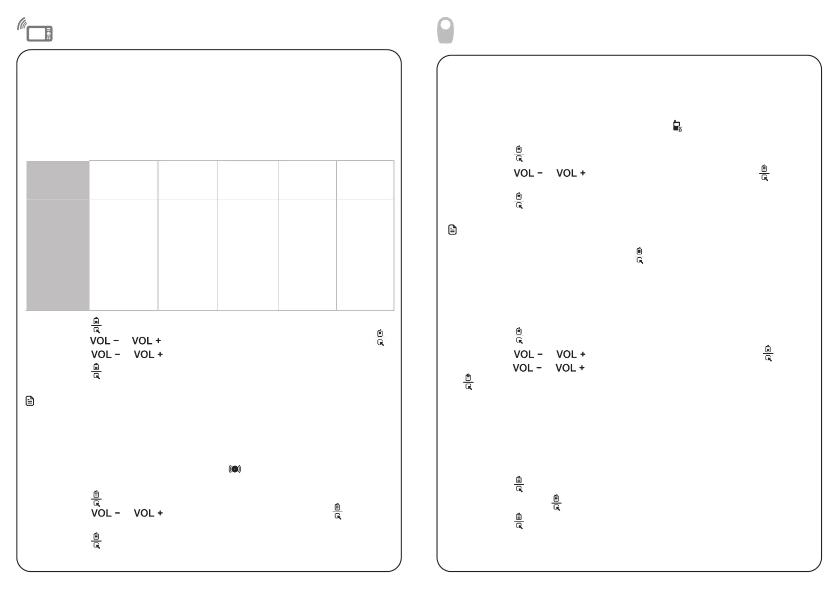 • Pour entrer dans le menu du niveau VOX de l’unité parents, l’unité bébé doit être activée.