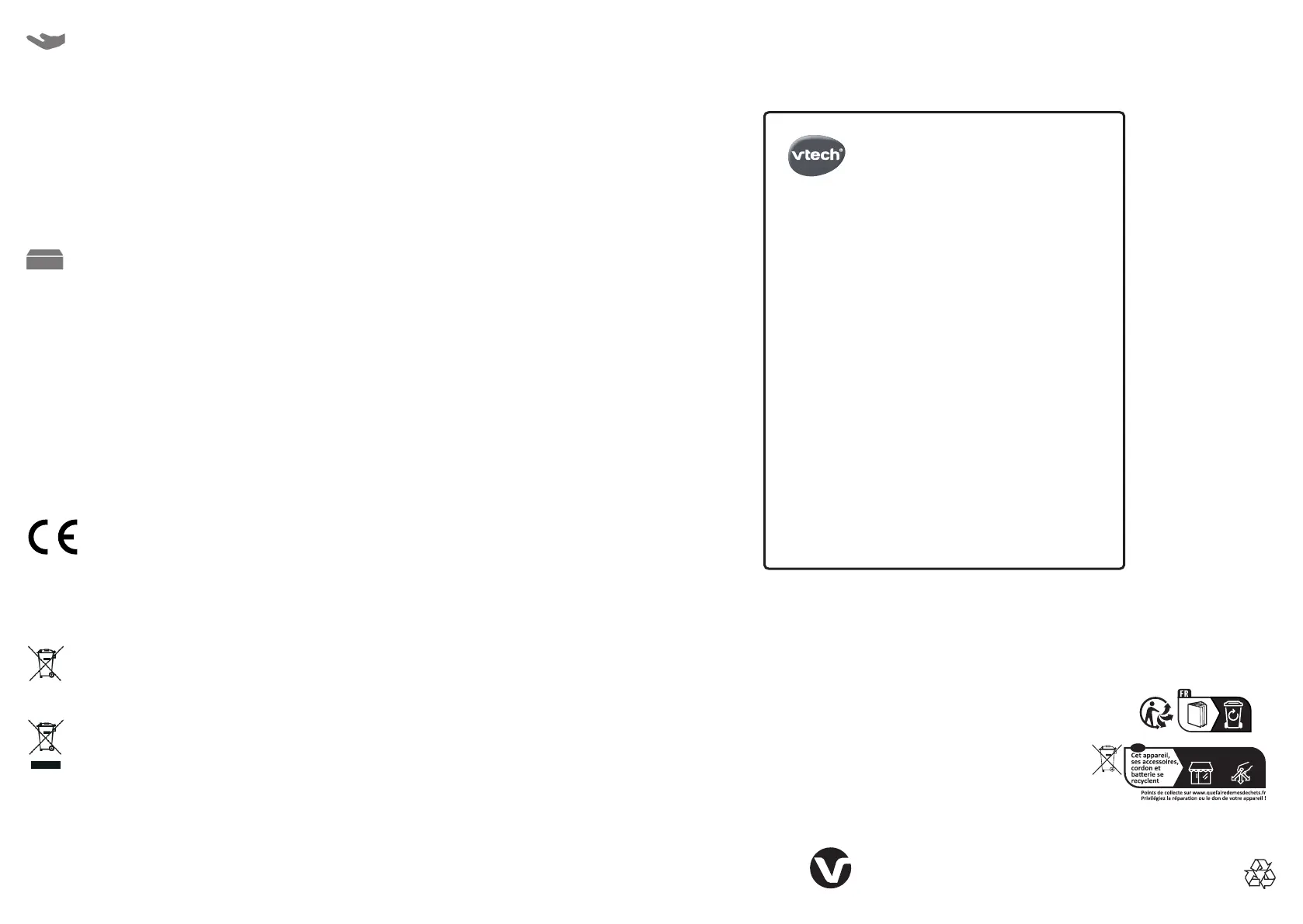 VTech vous recommande de retirer et de jeter vos piles et batteries usagées dans les containers prévus
