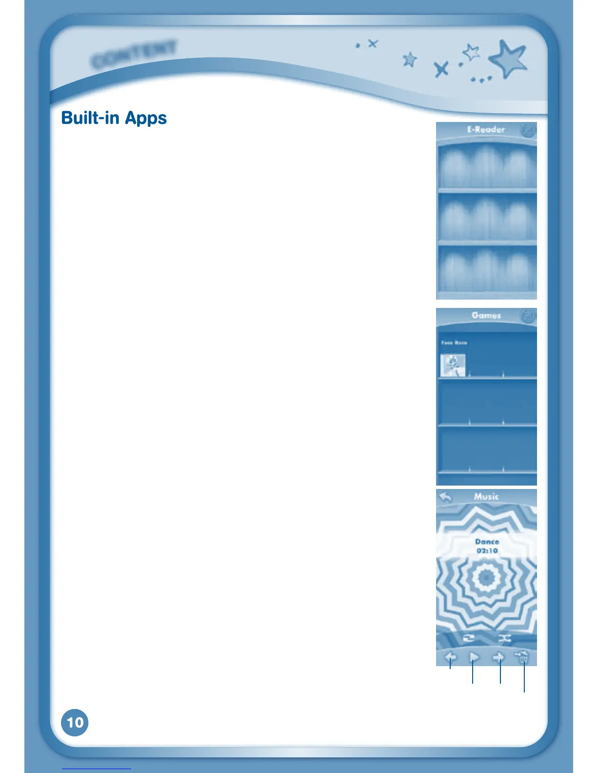 Touch the E-Reader icon to read e-books downloaded