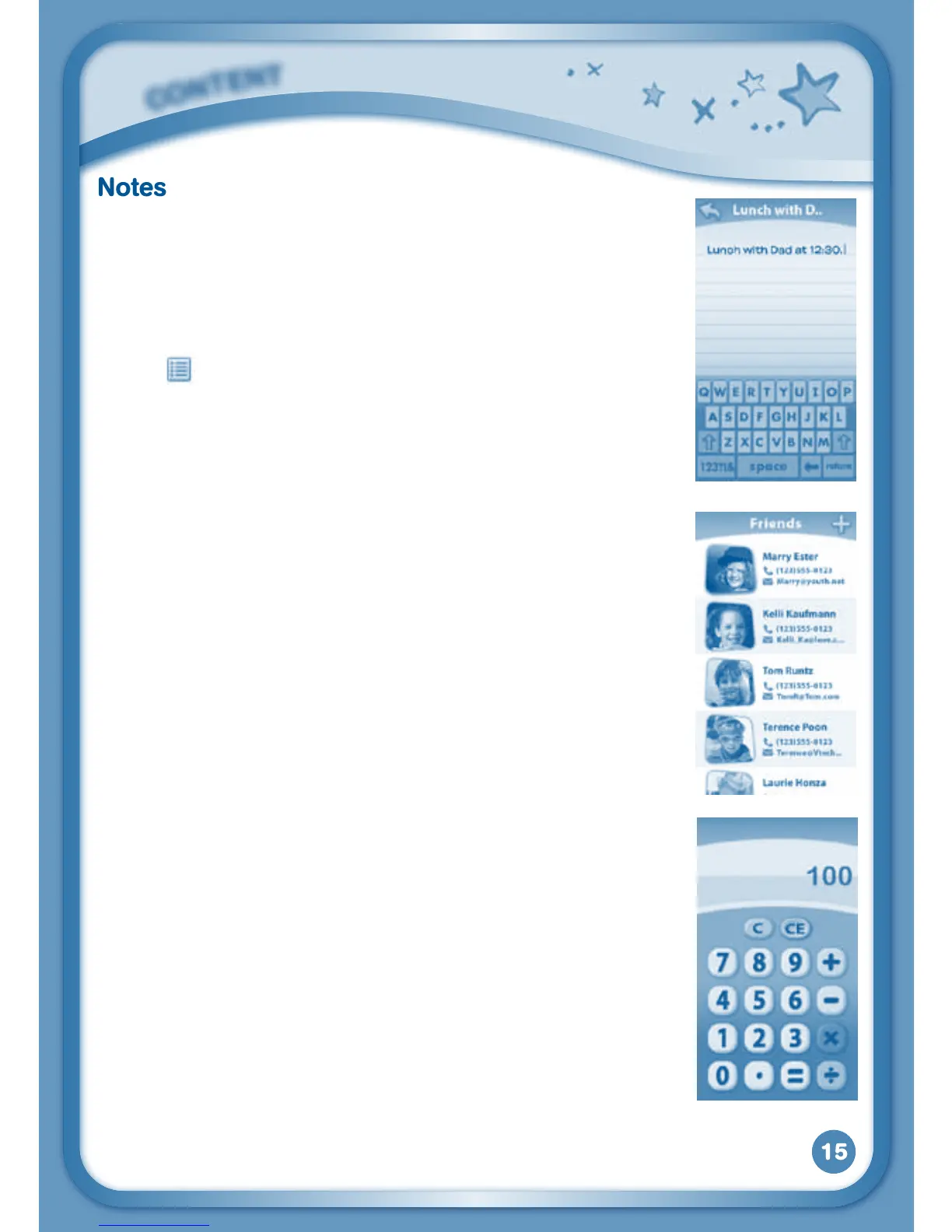 Touch the Notes icon to type a new note or view a note