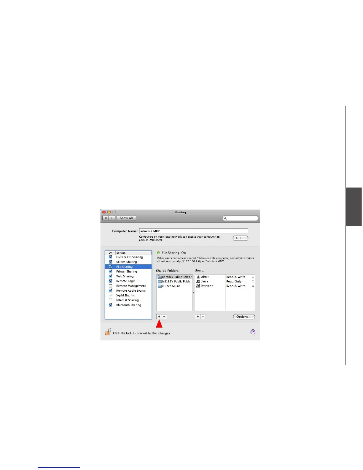 6. Click the + button under the “Shared Folder” pane. Navigate to your existing iTunes or other