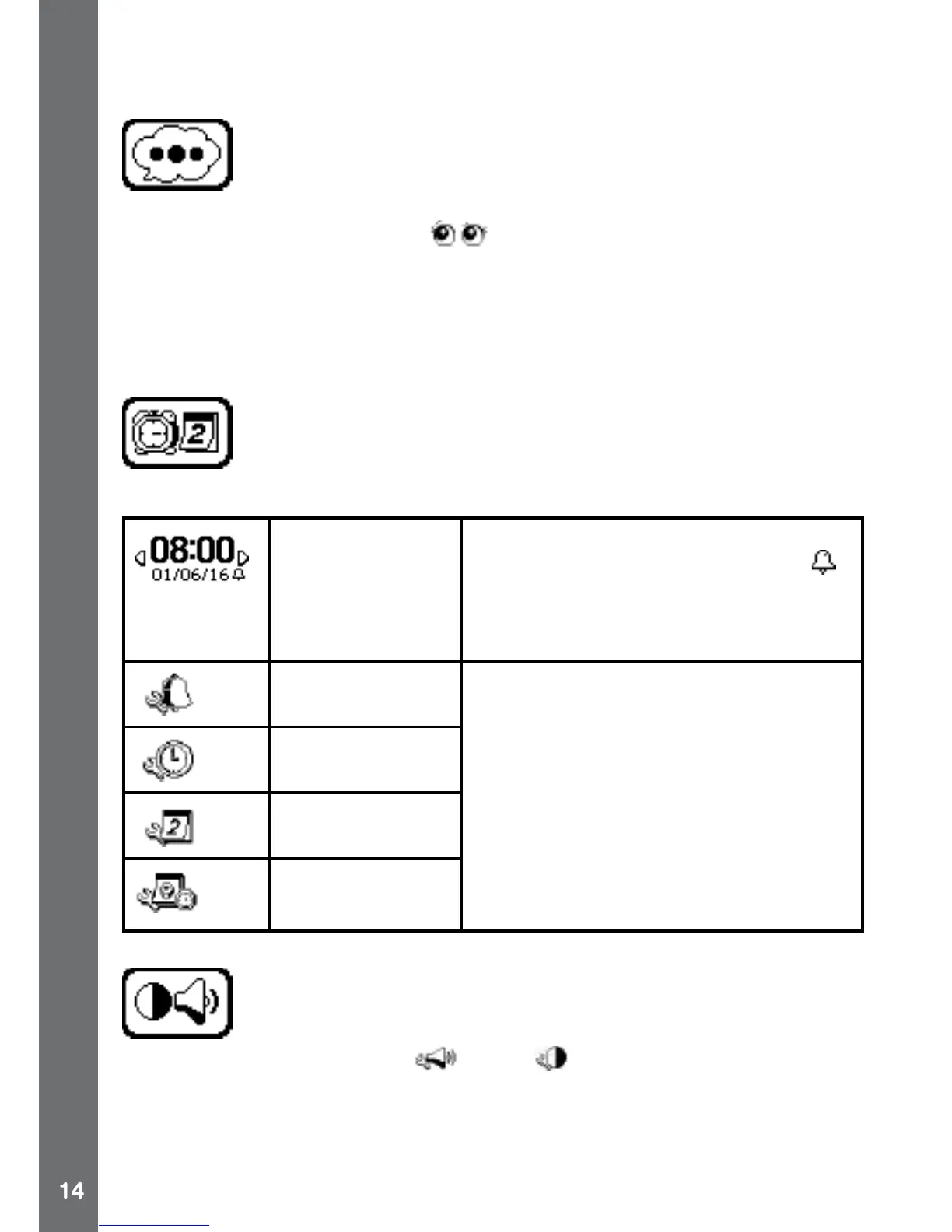 RIGHT button to change the sound level or display contrast level. Press