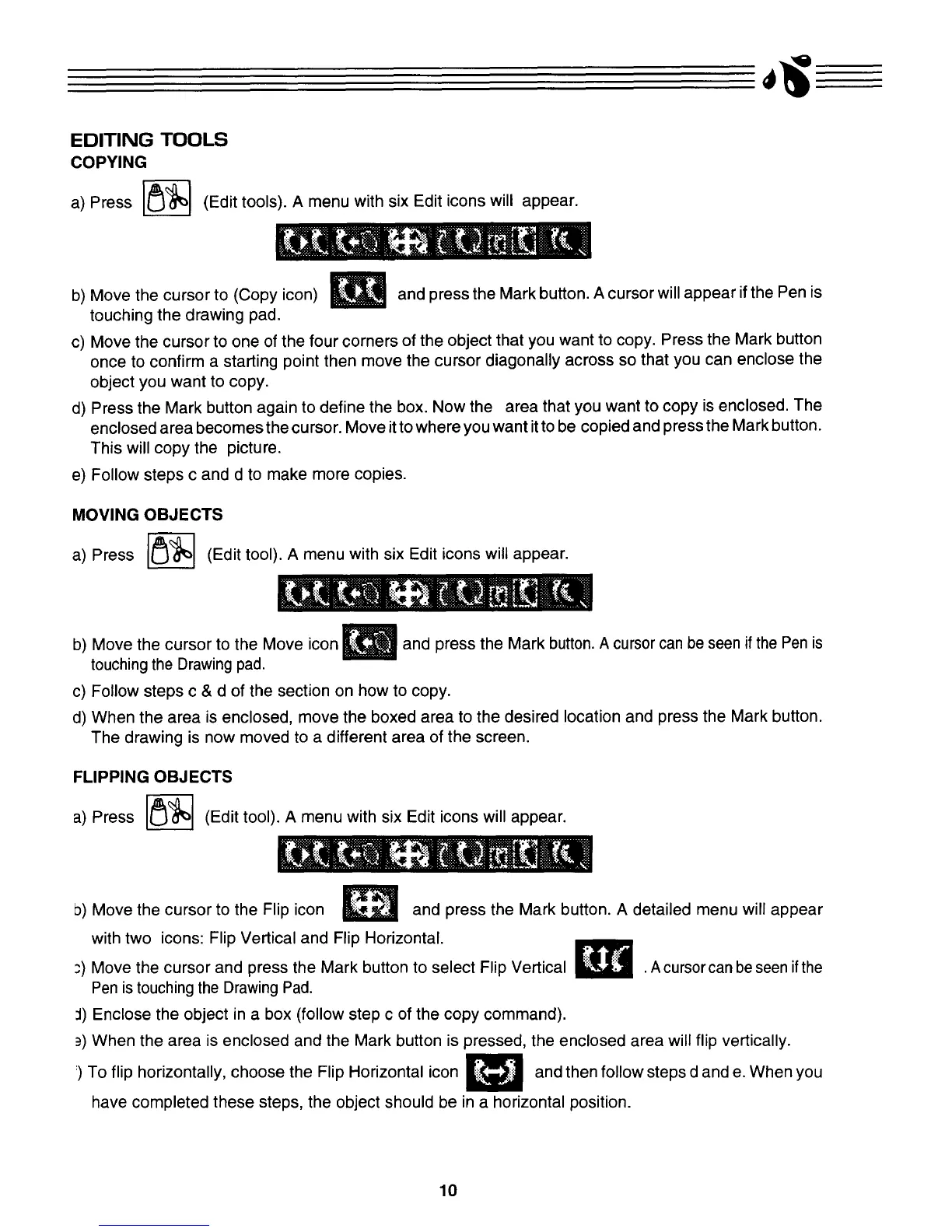 VTech Master Video Painter - Editing Tools; Copying; Moving Objects; Flipping Objects