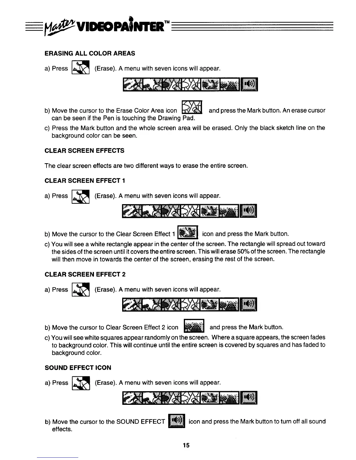 VTech Master Video Painter - Erasing All Color Areas; Clear Screen Effects; Sound Effect Icon