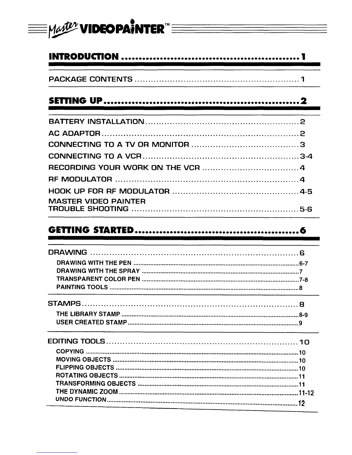 VTech Master Video Painter - Contents
