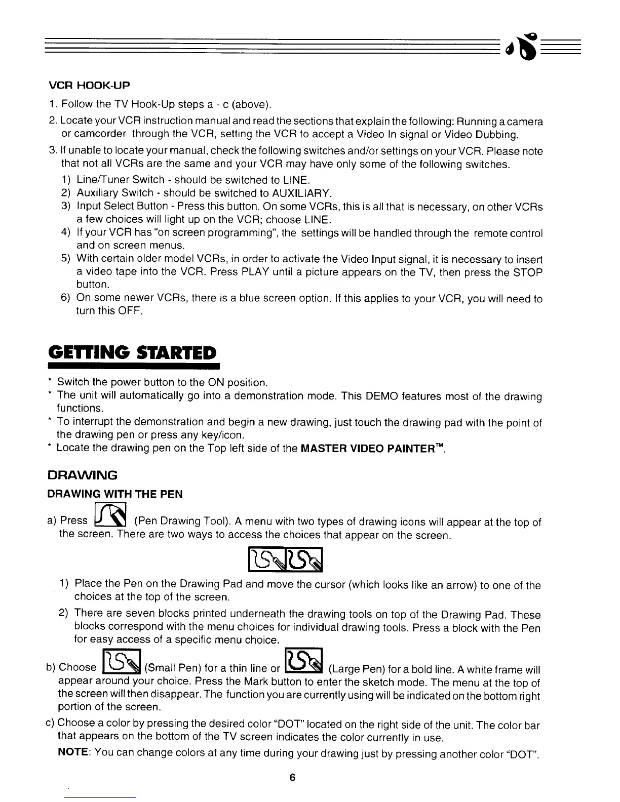 VTech Master Video Painter - VCR Hook-Up; Getting Started; Drawing with the Pen