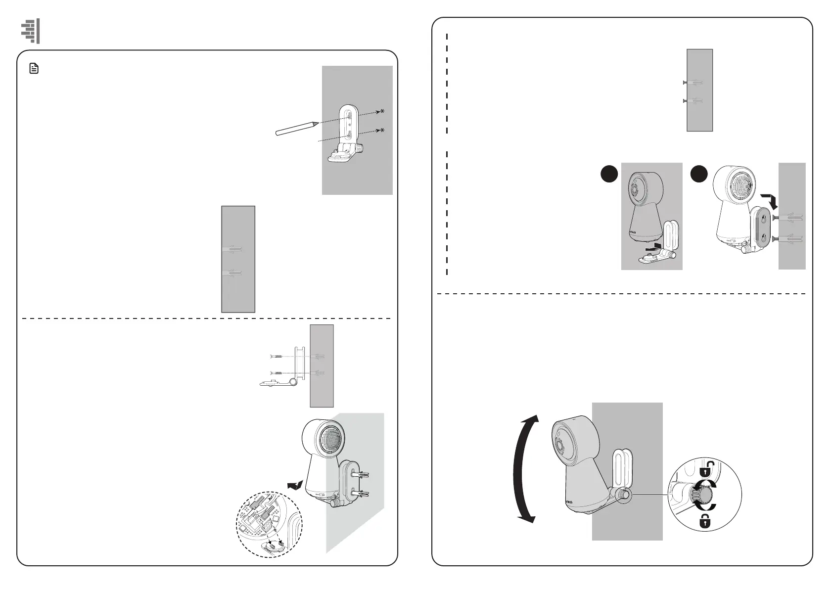 montre. Cette opération permet de desserrer l’articulation du support mural. Incli-