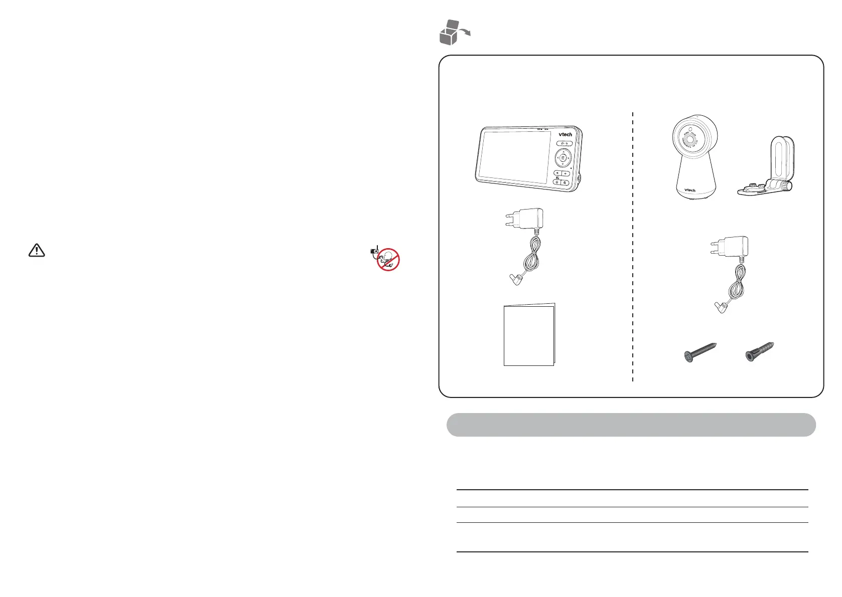La confezione del baby monitor contiene iseguenti elementi. Conservare la ricevuta di vendita