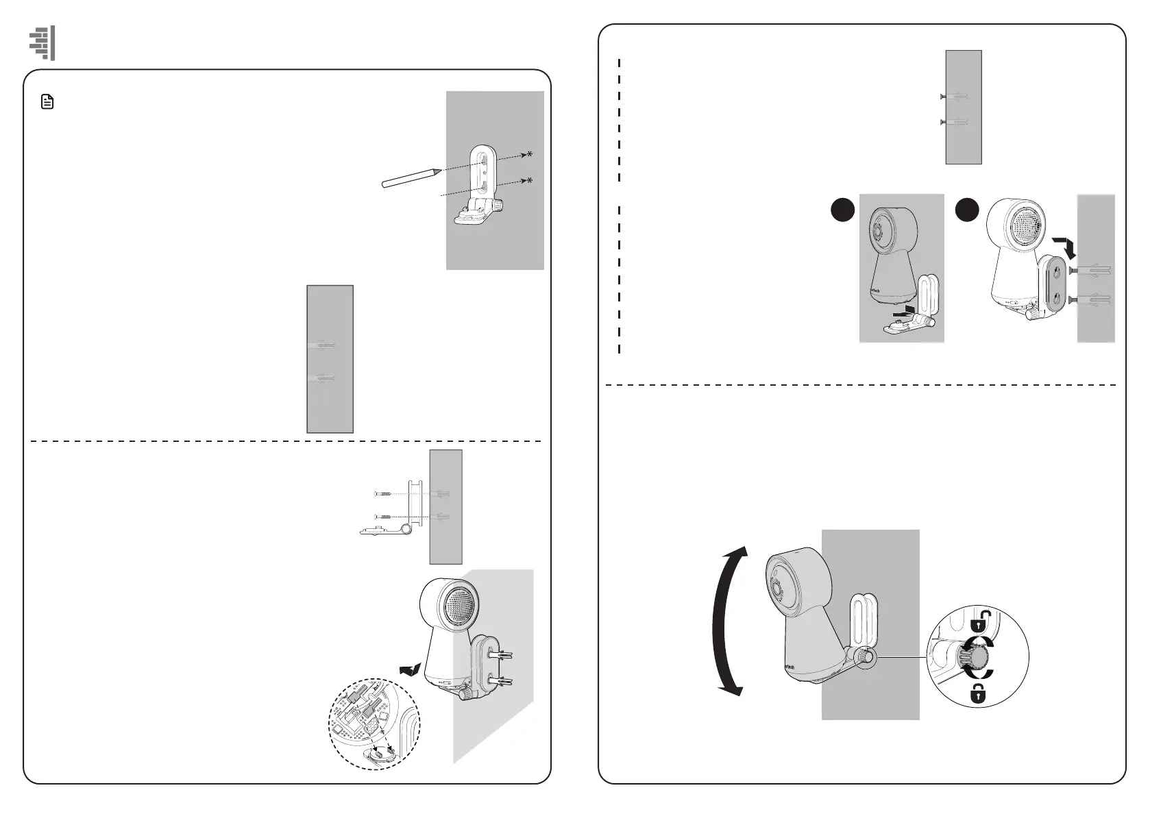 tar ajunta do suporte de montagem na parede. Incline asua unidade de bebé para