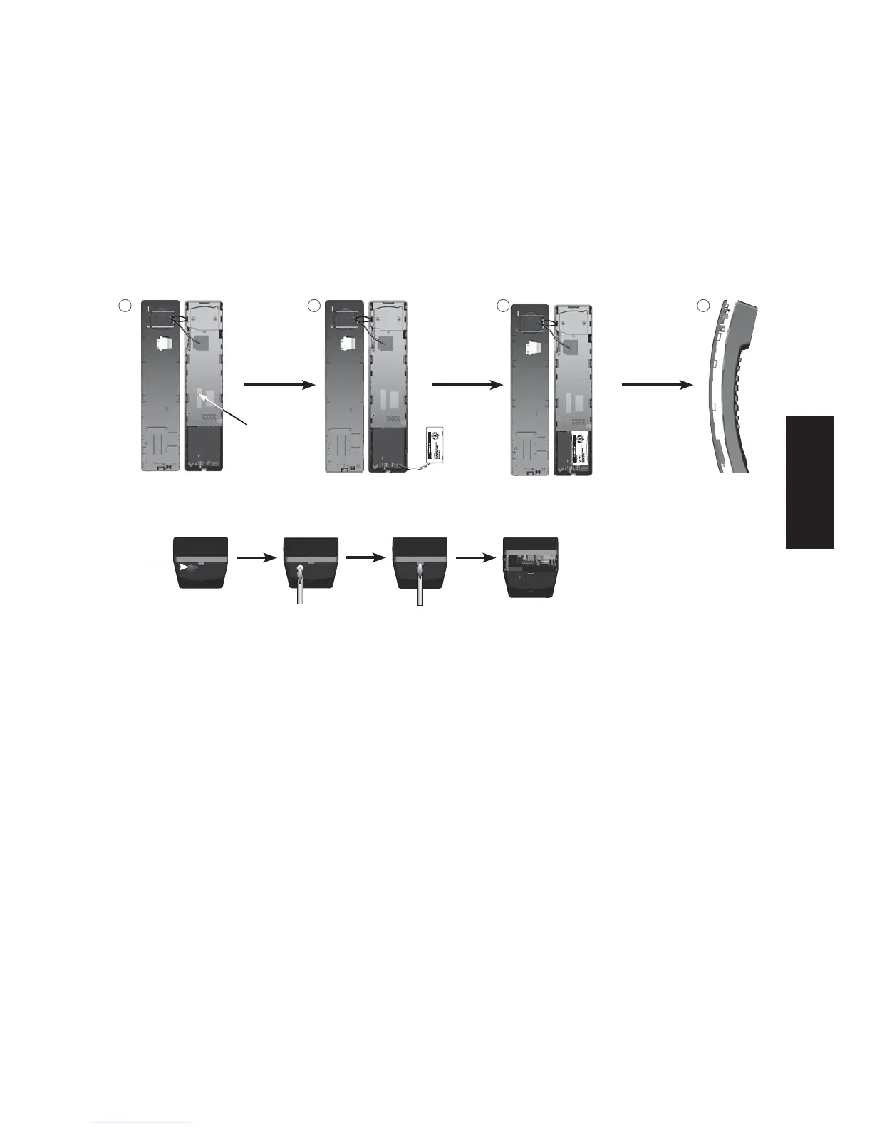 2TQEÃFG\VGNSWGFÃETKV´NCUGEVKQP Installation de la pile du combiné EKFGUUQWURQWTKPUVCNNGTWPGPQWXGNNGRKNG.