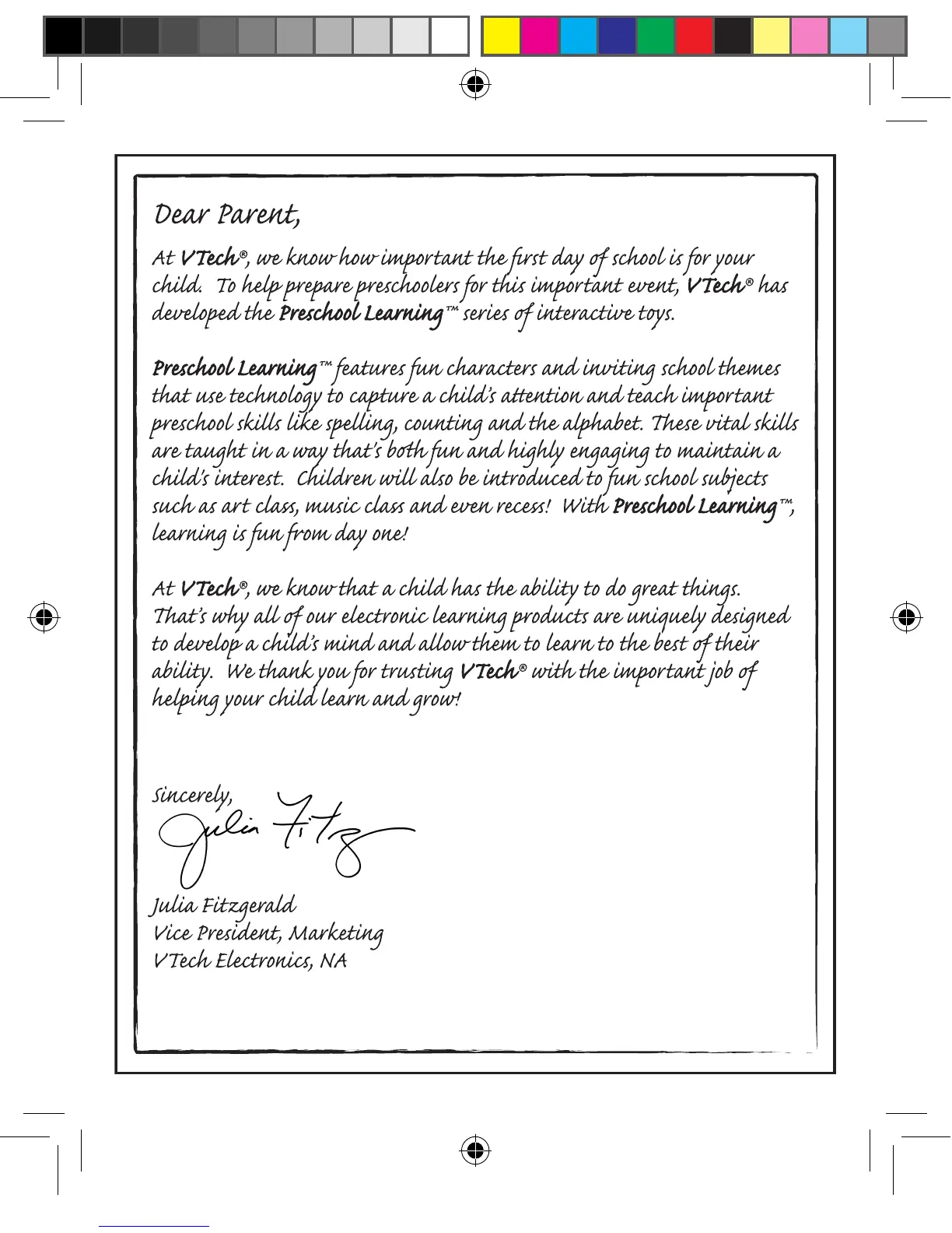 To learn more about the Preschool Learning series and other VTech® toys, visit www.vtechkids.com