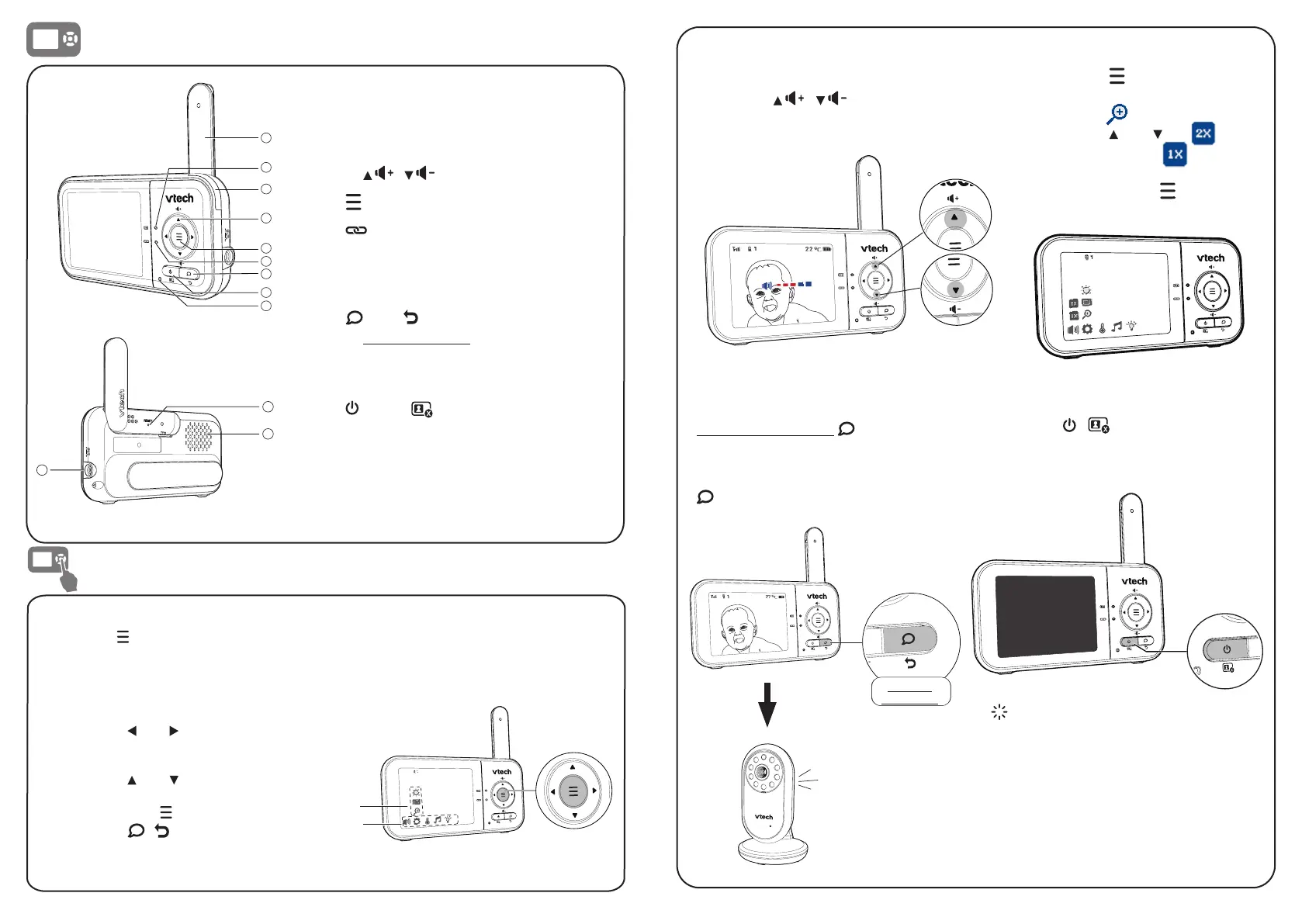 Elterneinheit für erweiterte Einstellungsvorgänge und Bedienung der Babyeinheit benutzen, z.B.