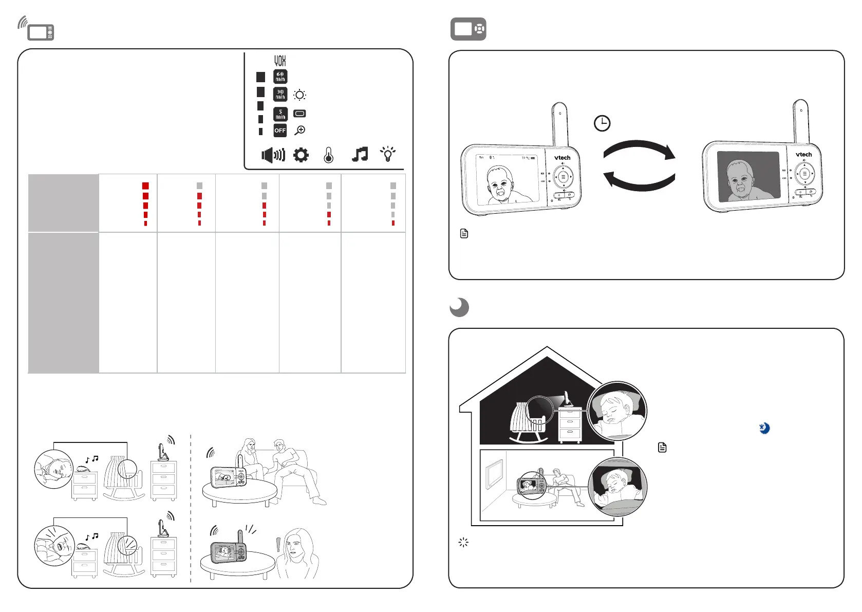 Bei Auswahl von VOX bleibt der Bildschirm der Elterneinheit ausgeschaltet, um Strom zu sparen,