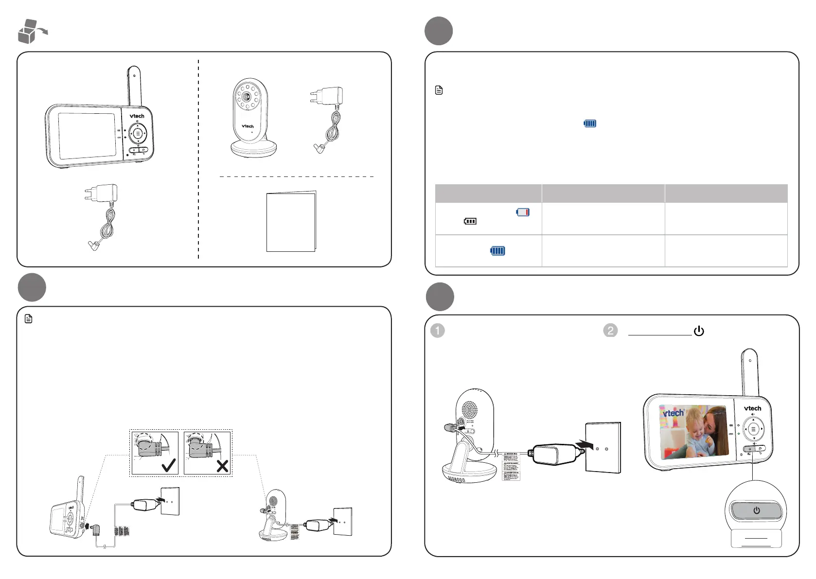 • Assicurarsi che l’unità genitore, l’unità bambino ei cavi dell’adattatore di alimentazione siano