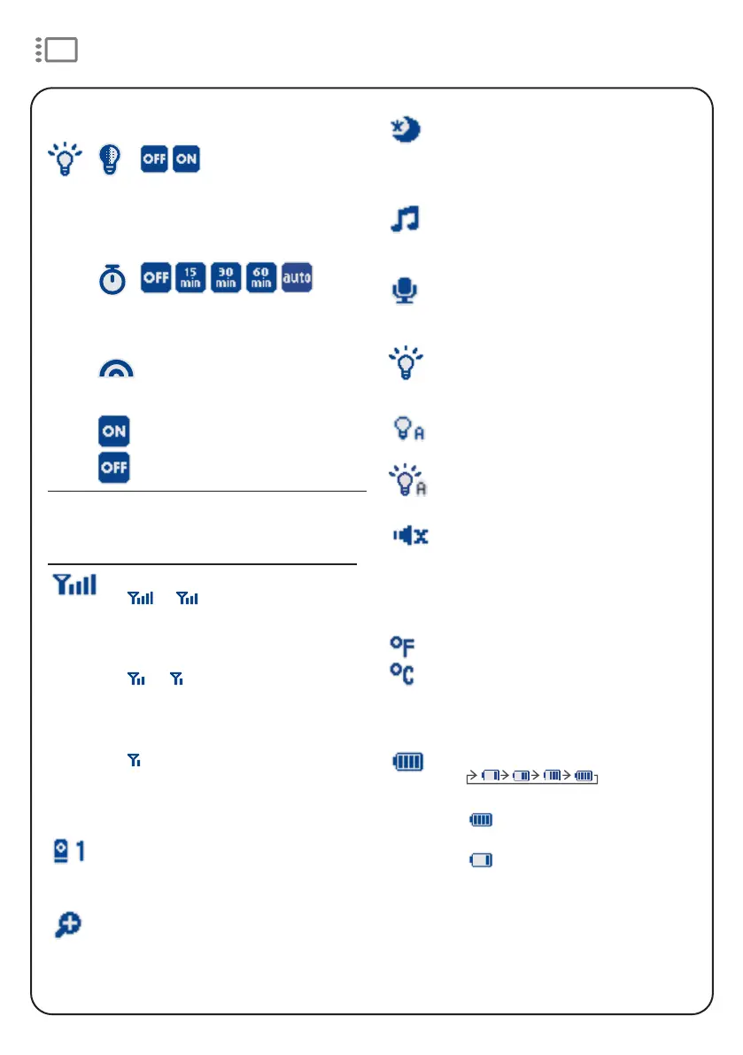 • Displays when the baby unit’s night